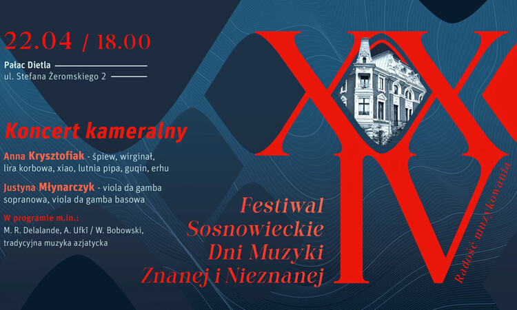 22.04.2025 r. o godz. 18.00 Pałac Dietla, ul. Stefana Żeromskiego 2 zaprasza na koncert kameralny w ramach XXIV Festiwalu „Sosnowieckie Dni Muzyki Znanej i Nieznanej” – Radość muzykowania.