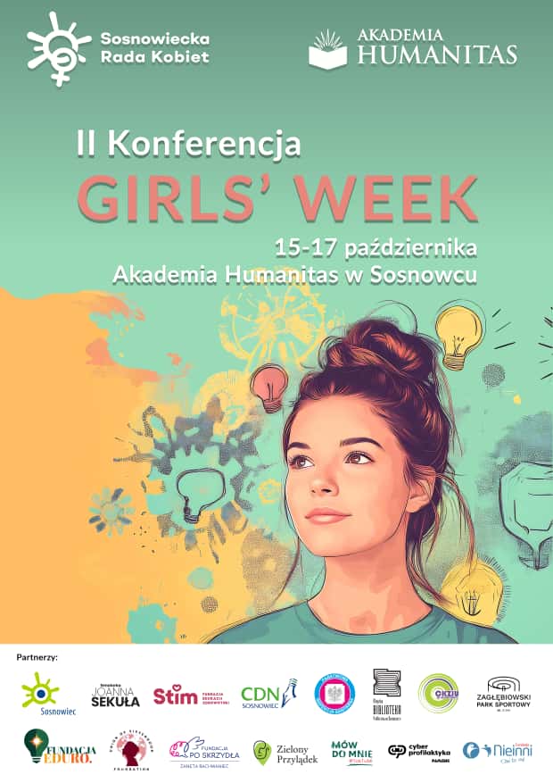 W dniach od  15-17 października 2025 roku Sosnowiecka Rada Kobiet i Akademia Humanitas zapraszają na  Girls’ Week. Trzydniowa konferencja skierowana jest do uczennic klas 7-8. Honorowy patronat nad wydarzeniem objął prezydent Sosnowca Arkadiusz Chęciński.