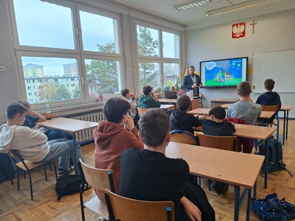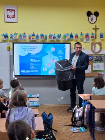 W obecnym miesiącu już kilkukrotnie w nocy i nad ranem spadały temperatury w okolicy 0°C – 10°C, a tym samym pojawiło się pierwsze ryzyko wystąpienia alertów smogowych. Między innymi na ten temat w dniach od 20 do 22 października 2025 r. Ekodoradca prowadził zajęcia w Szkole Podstawowej nr 17 w Sosnowcu przy ul. Zamkowa 17, które to odbywały się w ramach projektu LIFE „Śląskie. Przywracamy błękit”. W trakcie zajęć 205 uczniów z klas od I do VIII dowiedziało się, jakie zagrożenia dla życia i zdrowia niosą ze sobą zanieczyszczenia powietrza. między innymi na skutek nieodpowiedzialnego spalania odpadów czy węgla słabej jakości w tak zwanych „kopciuchach”. Młodzież szkolna dowiedziała się również, jakie działania należy podejmować, aby chronić się przed smogiem oraz gdzie i kogo należy powiadomić w przypadku, gdy będą świadkami spalania odpadów. W dalszej kolejności, na podstawie prezentacji z MPGO Sosnowiec, zapoznano uczniów z tematem gospodarowania, segregowania i recyklingu odpadów, które każdy z nas wytwarza na co dzień. Lekcje były urozmaicone między innymi filmami ze strony Samorządu Województwa Śląskiego – „Śląskie pełne czystej energii”, w ramach kampanii edukacyjno-informacyjnej pt. „MOGĘ! Zatrzymać SMOG…”. Ponadto uczniom poszczególnych klas były rozdawane w zależności od wieku: kolorowanki, krzyżówki, gry i inne gadżety jak aluminiowe bidony wielokrotnego użytku, przygotowane przez MPGO Sosnowiec.