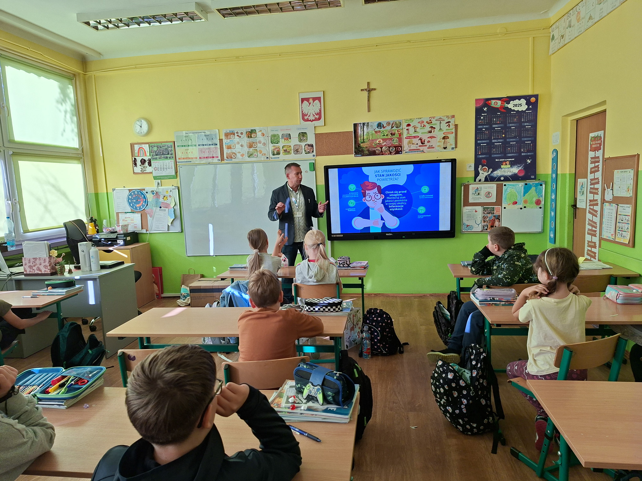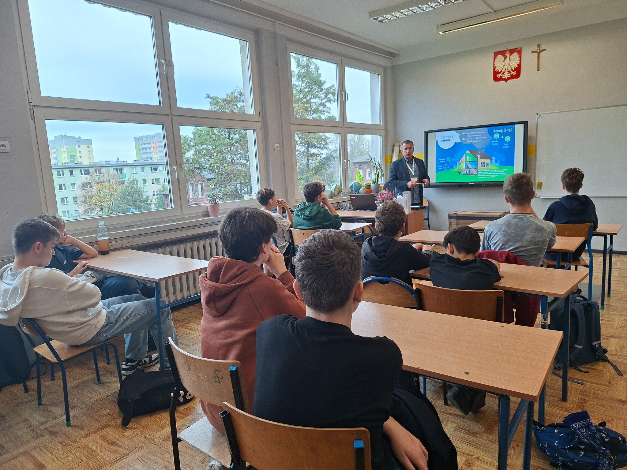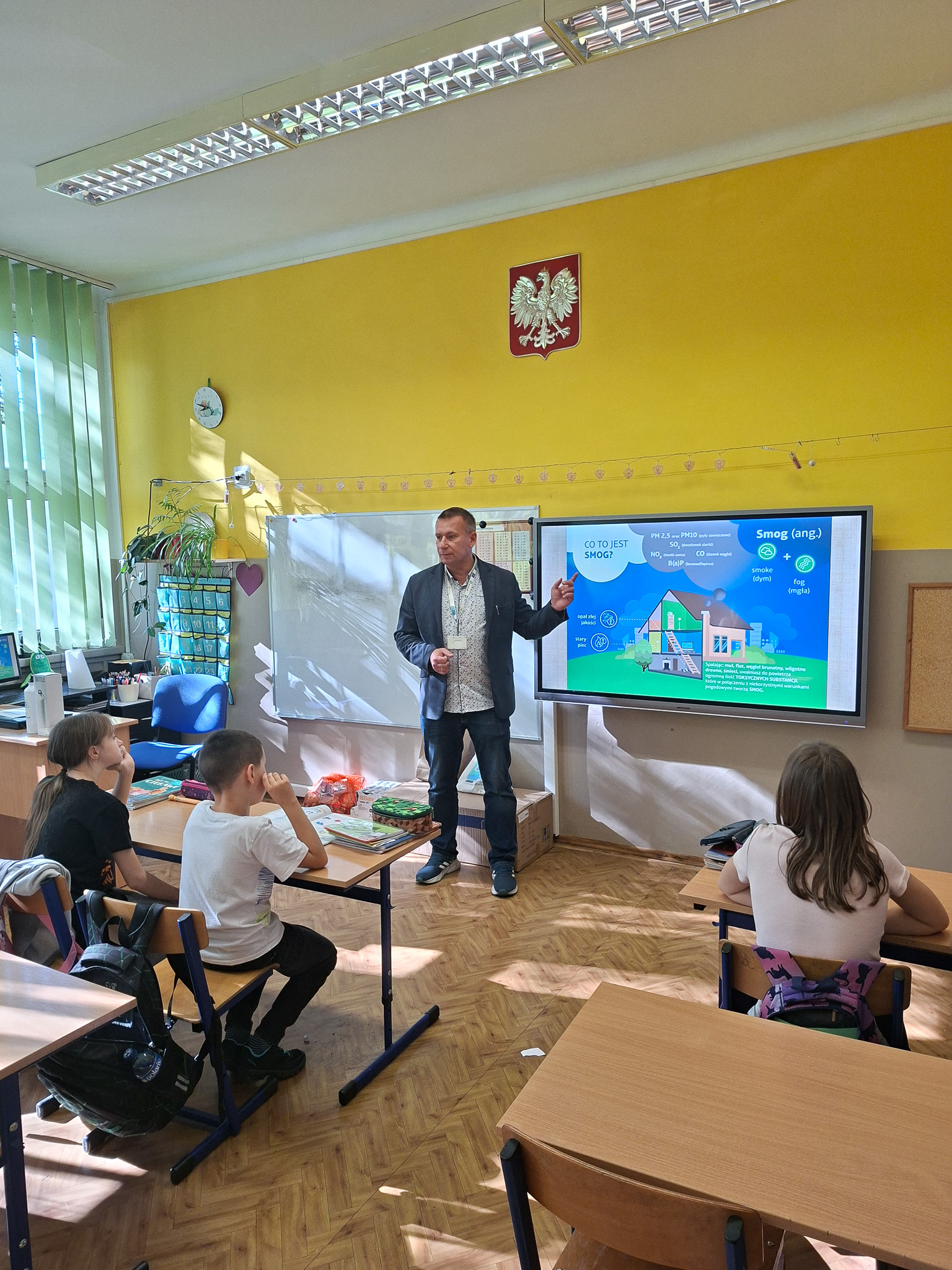 W obecnym miesiącu już kilkukrotnie w nocy i nad ranem spadały temperatury w okolicy 0°C – 10°C, a tym samym pojawiło się pierwsze ryzyko wystąpienia alertów smogowych. Między innymi na ten temat w dniach od 20 do 22 października 2025 r. Ekodoradca prowadził zajęcia w Szkole Podstawowej nr 17 w Sosnowcu przy ul. Zamkowa 17, które to odbywały się w ramach projektu LIFE „Śląskie. Przywracamy błękit”. W trakcie zajęć 205 uczniów z klas od I do VIII dowiedziało się, jakie zagrożenia dla życia i zdrowia niosą ze sobą zanieczyszczenia powietrza. między innymi na skutek nieodpowiedzialnego spalania odpadów czy węgla słabej jakości w tak zwanych „kopciuchach”. Młodzież szkolna dowiedziała się również, jakie działania należy podejmować, aby chronić się przed smogiem oraz gdzie i kogo należy powiadomić w przypadku, gdy będą świadkami spalania odpadów. W dalszej kolejności, na podstawie prezentacji z MPGO Sosnowiec, zapoznano uczniów z tematem gospodarowania, segregowania i recyklingu odpadów, które każdy z nas wytwarza na co dzień. Lekcje były urozmaicone między innymi filmami ze strony Samorządu Województwa Śląskiego – „Śląskie pełne czystej energii”, w ramach kampanii edukacyjno-informacyjnej pt. „MOGĘ! Zatrzymać SMOG…”. Ponadto uczniom poszczególnych klas były rozdawane w zależności od wieku: kolorowanki, krzyżówki, gry i inne gadżety jak aluminiowe bidony wielokrotnego użytku, przygotowane przez MPGO Sosnowiec.