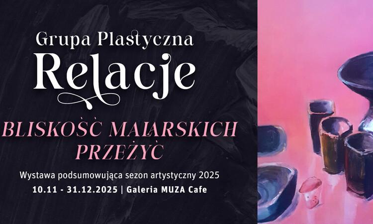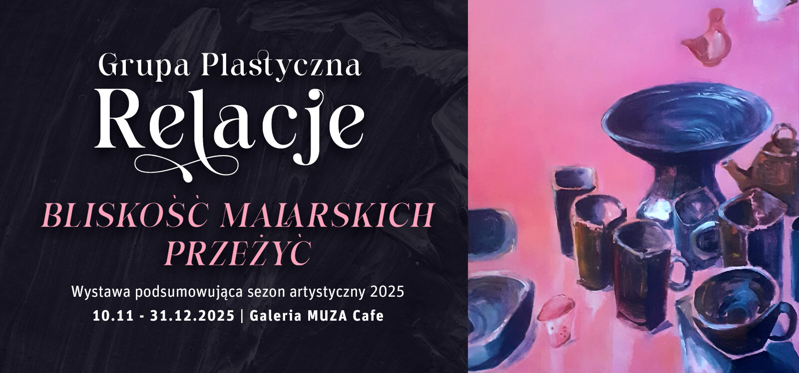 14.11.2025 o g. 17.00 Galeria MUZA CAFE  zaprasza na wystawę Grupy Plastycznej Relacje. Wystawa potrwa do 31 grudnia 2025 r.