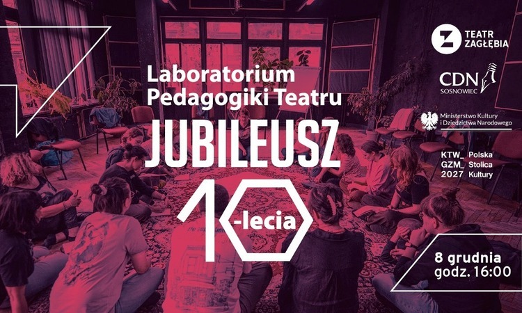 Obchody jubileuszowe odbędą się 8 grudnia 2025 i są skierowane do wszystkich osób zainteresowanych ideami pedagogiki teatru i jej praktycznym wymiarem. Poszczególne punkty programu poprowadzą absolwenci i absolwentki kursu. Obejrzymy także najnowszy spektakl Teatru Zagłębia pt. “Sienkiewicz, do domu!”, który powstał z myślą o uczniach i uczennicach. Zaplanowaliśmy również czas na swobodne rozmowy przy kawie i słodkościach.