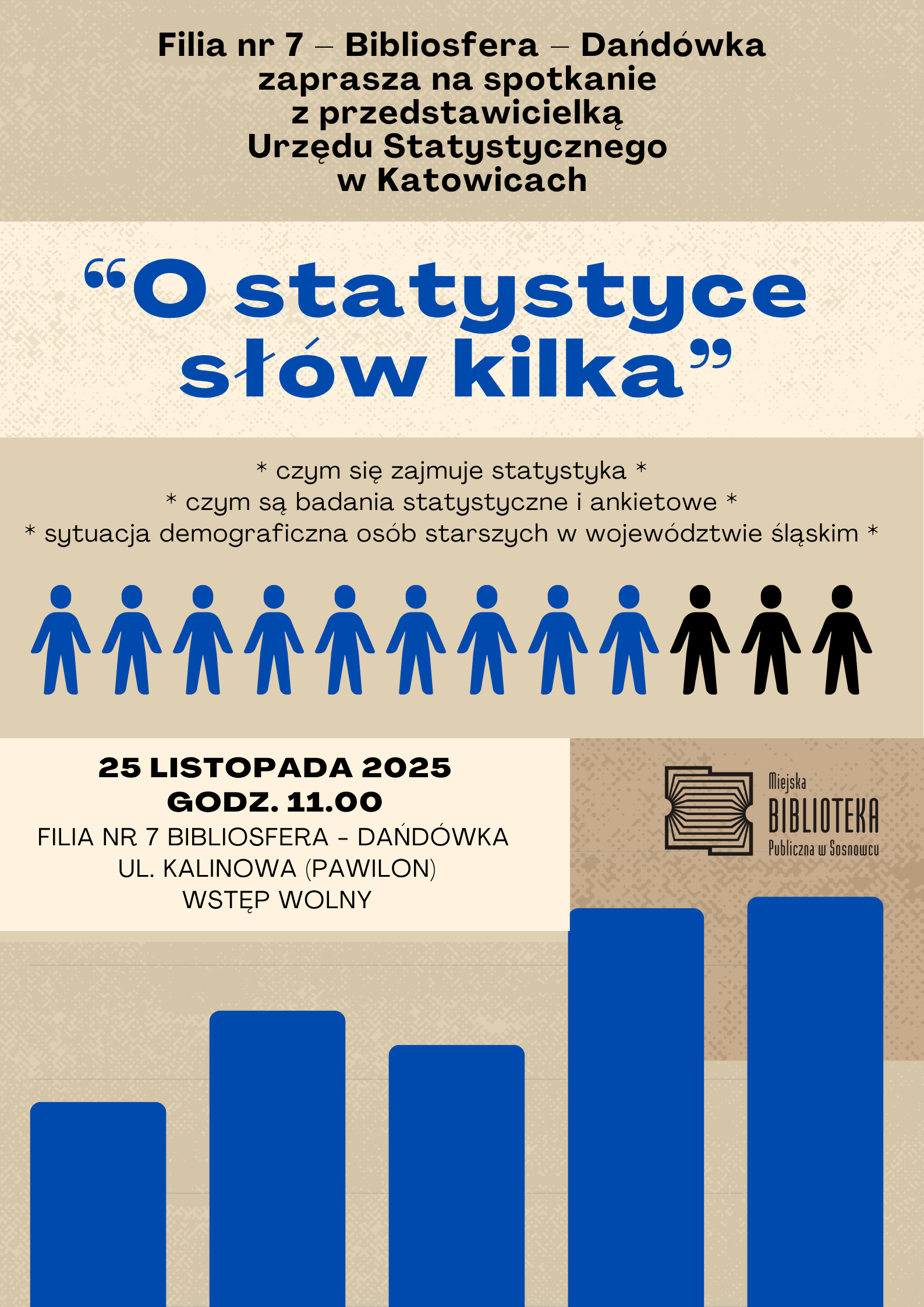 Okazuje się bowiem, że Główny Urząd Statystyczny zbiera bardzo różne dane. Statystyka publiczna gromadzi i udostępnia informacje na temat mieszkańców naszego kraju, warunków życia, edukacji, kultury czy gospodarki. To dzięki takim danym wiemy np. ile książek przeczytał statystyczny Polak w danym roku. Spotkanie w Bibliosferze odbędzie się 25 listopada o godzinie 11.00. Wstęp wolny!