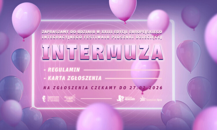 Urząd Miejski w Sosnowcu oraz Zagłębiowskie Centrum Kultury w Sosnowcu serdecznie zapraszają do udziału w XXIII Europejskim Integracyjnym Festiwalu Piosenki Dziecięcej ”INTERMUZA Sosnowiec 2026” pod dyrekcją artystyczną Jacka Cygana.