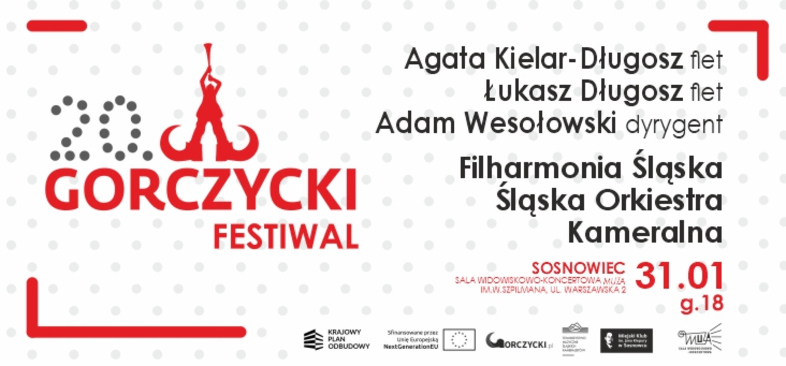 31 stycznia 2026 o godz. 18.00 MUZA zaprasza na koncert w ramach 20. Międzynarodowego Festiwalu im. Grzegorza Gerwazego Gorczyckiego.