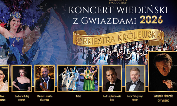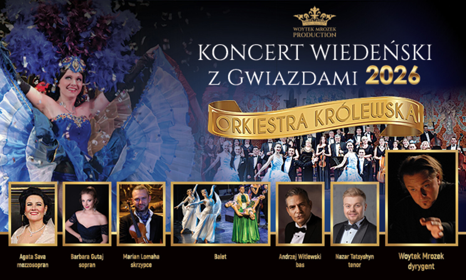 Wracamy i zapraszamy Państwa w podróż do roztańczonego, magicznego Wiednia oraz energetycznego Nowego Jorku, gdzie będą rozbrzmiewać najpiękniejsze arie, duety, walce i polki Johanna Straussa, Franca Lehara, Imre Kalmana a także największe szlagiery musicalowe, filmowe i światowe przeboje wszech czasów. Tegoroczny koncert w wykonaniu światowej. W programie udział wezmą międzynarodowi artyści – znani polskiej i międzynarodowej publiczności a wśród Agata Sava mezzosopran – solistka opery w Pradze, która koncertuje na scenach całego świata takich jak: Chicago Philharmonic Hall, Filharmonia Narodowa w Warszawie, Lucerne Concert Hall i wiele innych. Jest absolwentką Hohschule fur Musik w Monachium. Barbara Gutaj sopran, solistka Teatru Wielkiego w Poznaniu, wyróżniona prestiżową Teatralną Nagrodą Muzyczną im. Jana Kiepury w kategorii „Najlepszy Debiut” za debiut na deskach Mazowieckiego Teatru Muzycznego.Nazar Tatsyshyn – tenor niezaprzeczalnym numerem jeden wśród tenorów młodego pokolenia. Solista obdarzony pięknym głosem śpiewającym w najlepszej tradycji włoskiego Bel Canta jest solistą Opery Narodowej w Budapeszcie.
