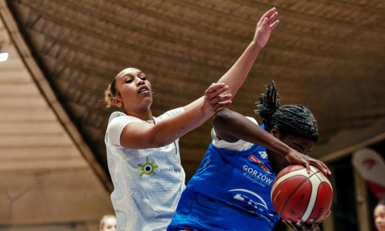 Nasz team musiał sobie jeszcze radzić bez Matei Tadić, ale mimo to zespół Piotra Gliniaka poradził sobie z liderem rozgrywek. Miejscowe zaczęły od mocnego uderzenia. Pięć z sześciu „trójek” znalazły się w koszu i Zagłębie prowadziło 15:7. Z czasem Gorzowianki zmniejszyły przewagę, która długo oscylowała w granicach 8 punktów. Pierwsza kwarta zakończyła się minimalnym prowadzeniem 27:25. Drugie dziesięć minut należało do rywalek. Dobre zawody rozgrywała w ekipie przeciwnej Ashley Owosu. Na przerwę oba zespoły schodziły przy stanie 52:43 dla przyjezdnych.