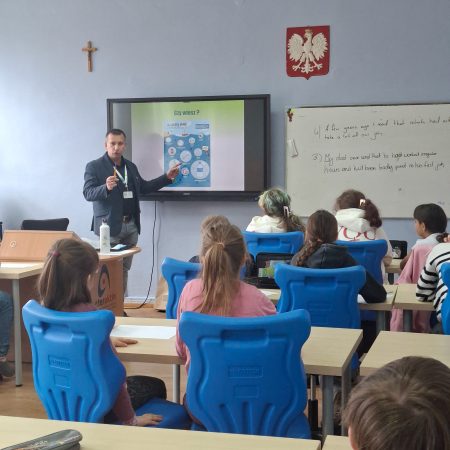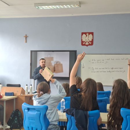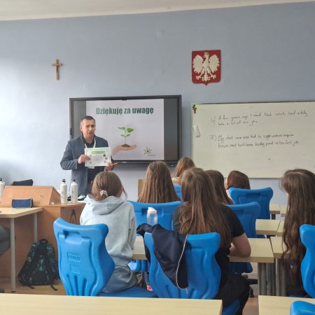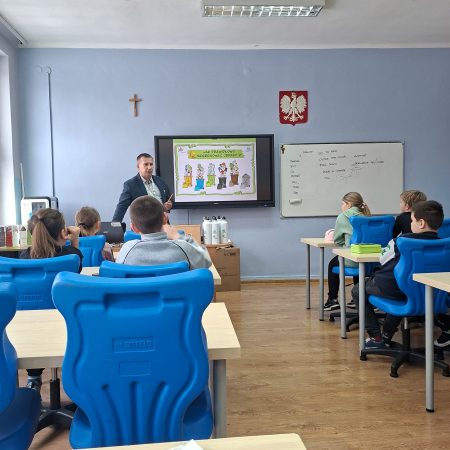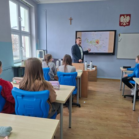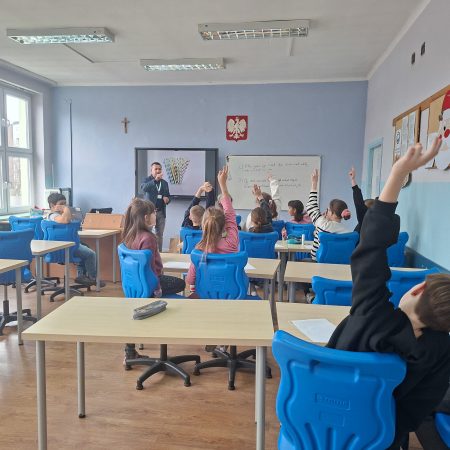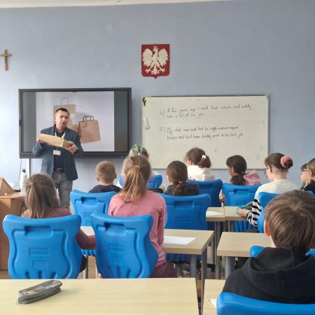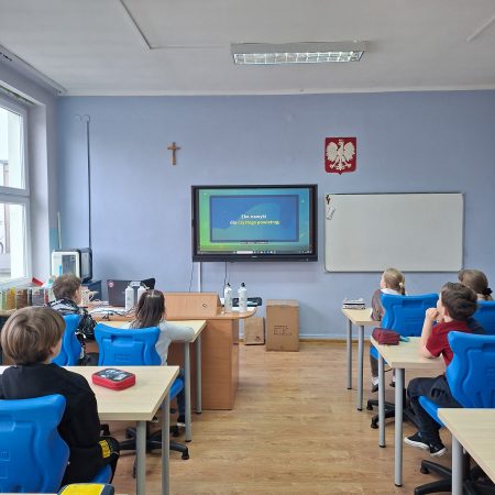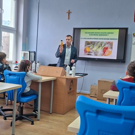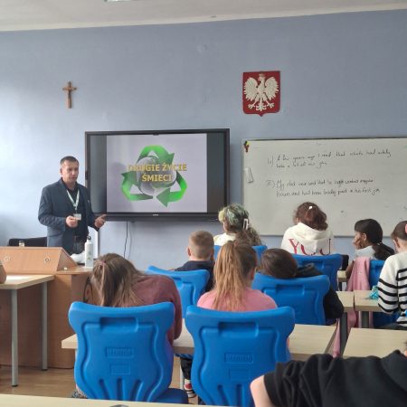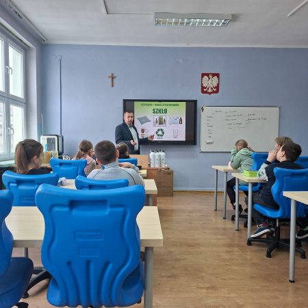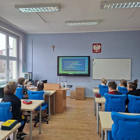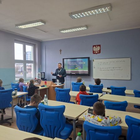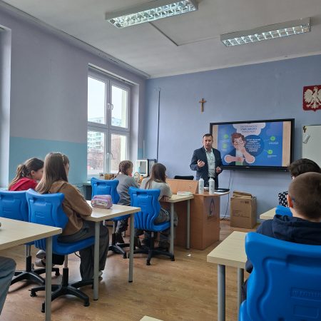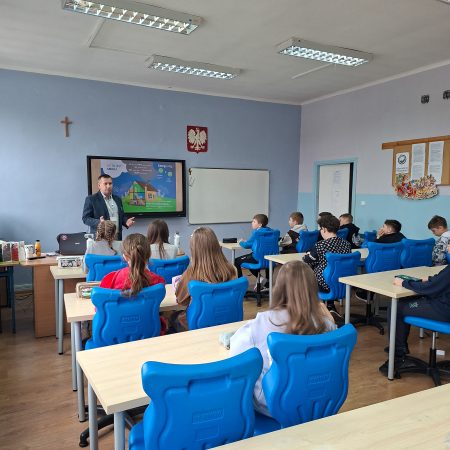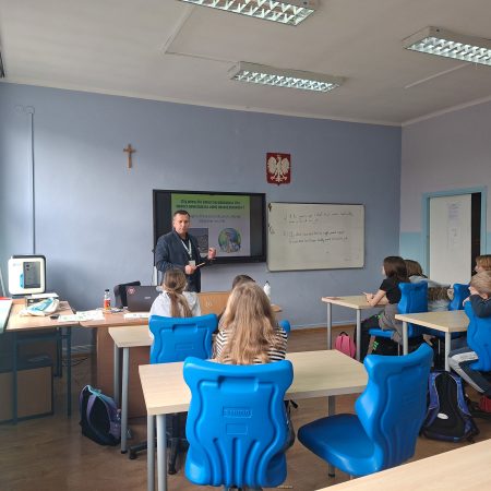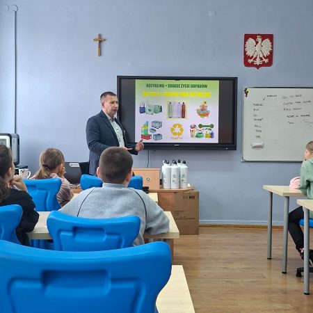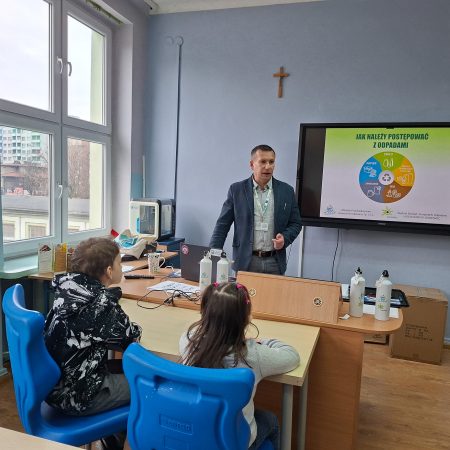 W dniach od 2 do 4 lutego 2026 r. Ekodoradca gościł w Szkole Podstawowej nr 22 w Sosnowcu przy ul. Anieli Urbanowicz 14, gdzie zostały prowadzone zajęcia w ramach realizowanego przez Urząd Miasta Sosnowca unijnego projektu LIFE „Śląskie. Przywracamy błękit”. W pierwszej kolejności młodzież szkolna została zapoznana z problematyką zanieczyszczeń powietrza, zwłaszcza że w ostatnim okresie podczas ujemnych temperatur na terenie naszego miasta była pogorszona jakość powietrza. Omówiono przyczyny powstawania SMOG-u, zagrożenia, jakie to zjawisko niesie dla życia i zdrowia ludzkiego, jak reagować, kiedy mamy podejrzenia, że ktoś spala odpady, gdzie sprawdzać jakość powietrza, aby nie przebywać zbyt długo na zewnątrz i nie wietrzyć pomieszczeń w przypadku wystąpienia alertu smogowego. Oprócz prezentacji wykorzystano też filmy edukacyjne ze strony Samorządu Województwa Śląskiego – „Śląskie pełne czystej energii”, które zostały opracowane w ramach kampanii edukacyjno-informacyjnej pt. „MOGĘ! Zatrzymać SMOG…”. Następnie młodzież szkolna została zapoznana z problematyką gospodarowania opadami. Pokazano jakie są zagrożenia środowiskowe, jeżeli nie będziemy prawidłowo segregować odpadów i poddawać ich recyklingowi. W tym celu wykorzystano prezentację przygotowaną przez MPGO Sosnowiec. Na koniec każdych zajęć uczniowie poszczególnych klas dostawali drobne bidony, a na terenie szkoły pozostawiono grę edukacyjną oraz informacje, jak można nawiązać kontakt z Ekodoradcą, w przypadku gdyby ktoś zauważył jakieś nieprawidłowości lub chciał skorzystać z porady dotyczącej wymiany nieefektywnego źródła ciepła, którego używanie jest niezgodne z obowiązującą tak zwaną „Śląską uchwałą antysmogową”. Łącznie w zajęcia brało udział 256 uczniów z klas I-VIII, którzy aktywnie brali udział w zajęciach, wykazując się przy tym podstawową wiedzą na temat współczesnej ekologii.
