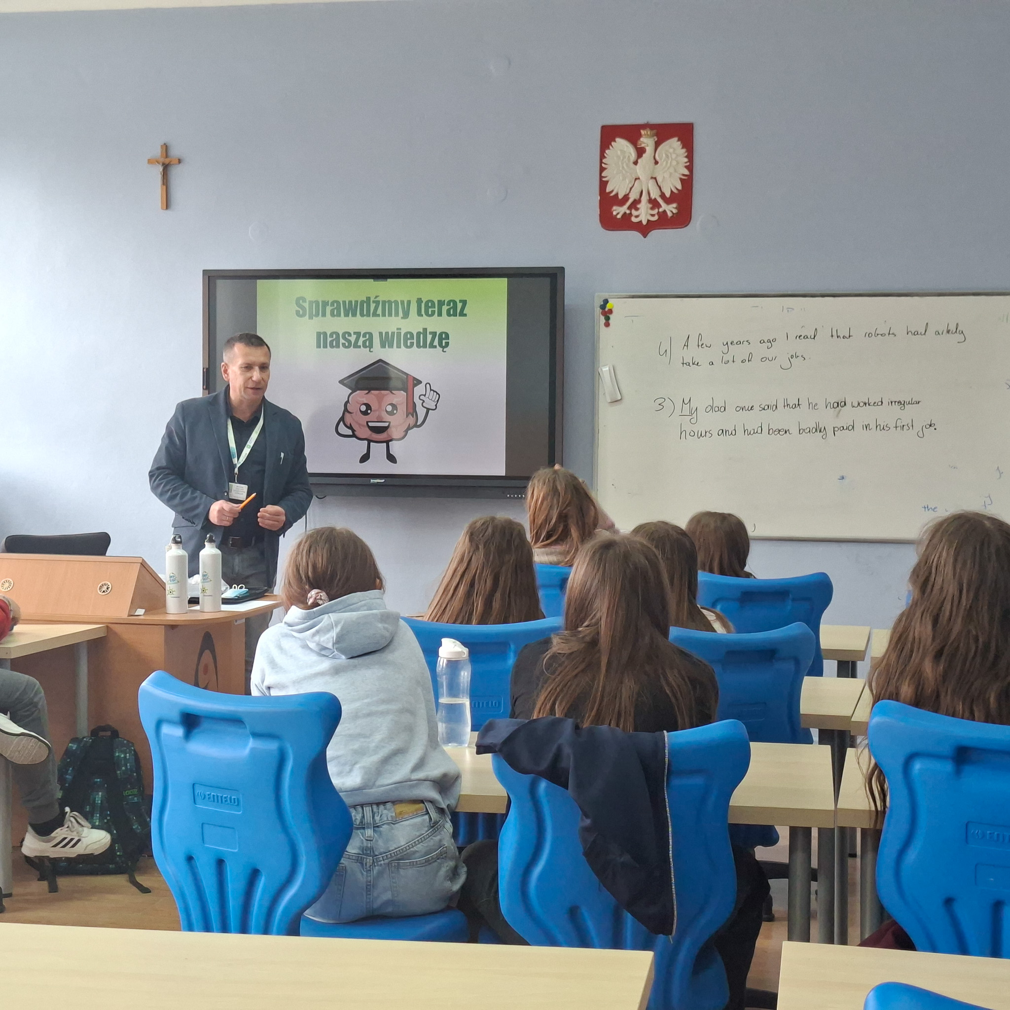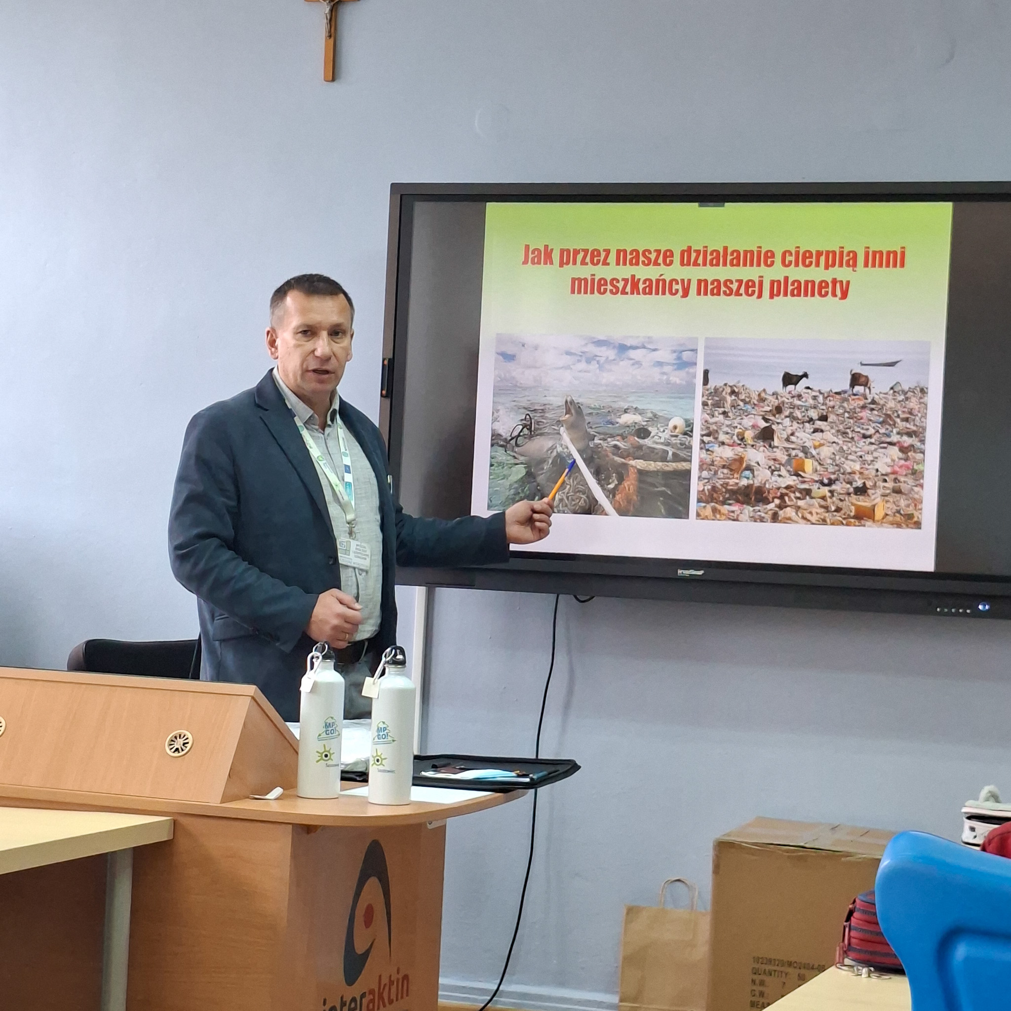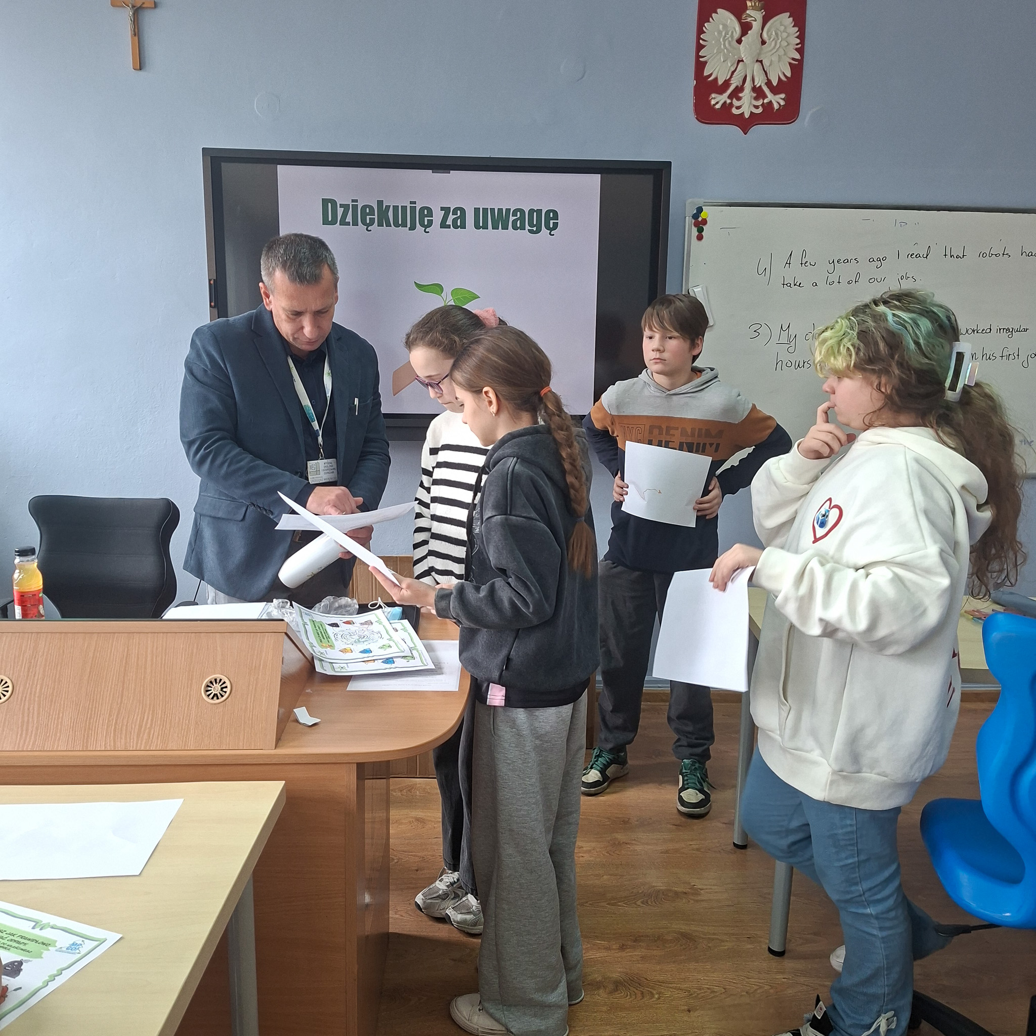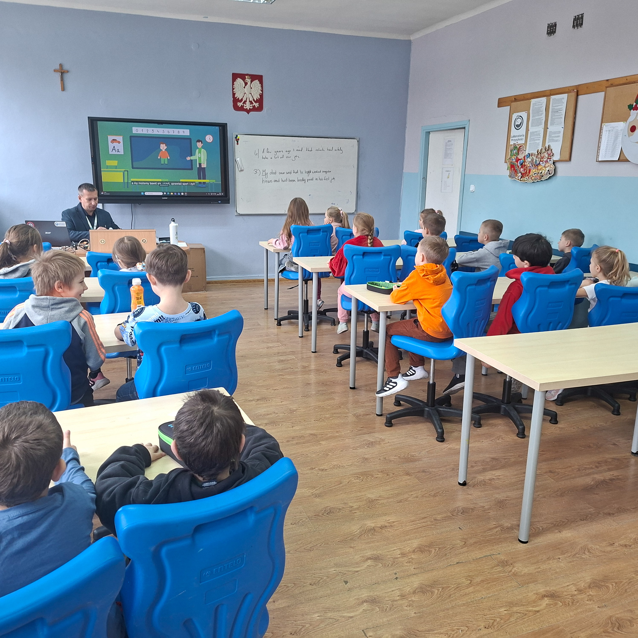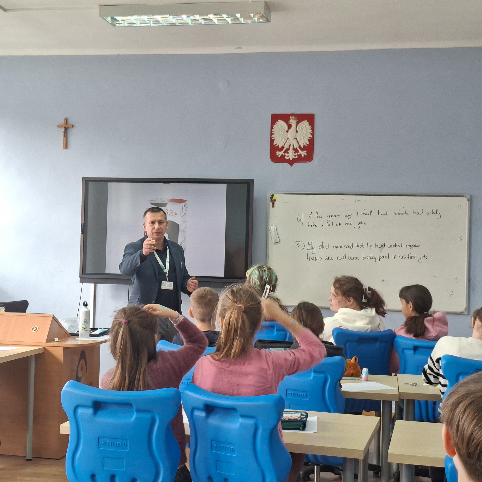 W dniach od 2 do 4 lutego 2026 r. Ekodoradca gościł w Szkole Podstawowej nr 22 w Sosnowcu przy ul. Anieli Urbanowicz 14, gdzie zostały prowadzone zajęcia w ramach realizowanego przez Urząd Miasta Sosnowca unijnego projektu LIFE „Śląskie. Przywracamy błękit”. W pierwszej kolejności młodzież szkolna została zapoznana z problematyką zanieczyszczeń powietrza, zwłaszcza że w ostatnim okresie podczas ujemnych temperatur na terenie naszego miasta była pogorszona jakość powietrza. Omówiono przyczyny powstawania SMOG-u, zagrożenia, jakie to zjawisko niesie dla życia i zdrowia ludzkiego, jak reagować, kiedy mamy podejrzenia, że ktoś spala odpady, gdzie sprawdzać jakość powietrza, aby nie przebywać zbyt długo na zewnątrz i nie wietrzyć pomieszczeń w przypadku wystąpienia alertu smogowego. Oprócz prezentacji wykorzystano też filmy edukacyjne ze strony Samorządu Województwa Śląskiego – „Śląskie pełne czystej energii”, które zostały opracowane w ramach kampanii edukacyjno-informacyjnej pt. „MOGĘ! Zatrzymać SMOG…”. Następnie młodzież szkolna została zapoznana z problematyką gospodarowania opadami. Pokazano jakie są zagrożenia środowiskowe, jeżeli nie będziemy prawidłowo segregować odpadów i poddawać ich recyklingowi. W tym celu wykorzystano prezentację przygotowaną przez MPGO Sosnowiec. Na koniec każdych zajęć uczniowie poszczególnych klas dostawali drobne bidony, a na terenie szkoły pozostawiono grę edukacyjną oraz informacje, jak można nawiązać kontakt z Ekodoradcą, w przypadku gdyby ktoś zauważył jakieś nieprawidłowości lub chciał skorzystać z porady dotyczącej wymiany nieefektywnego źródła ciepła, którego używanie jest niezgodne z obowiązującą tak zwaną „Śląską uchwałą antysmogową”. Łącznie w zajęcia brało udział 256 uczniów z klas I-VIII, którzy aktywnie brali udział w zajęciach, wykazując się przy tym podstawową wiedzą na temat współczesnej ekologii.