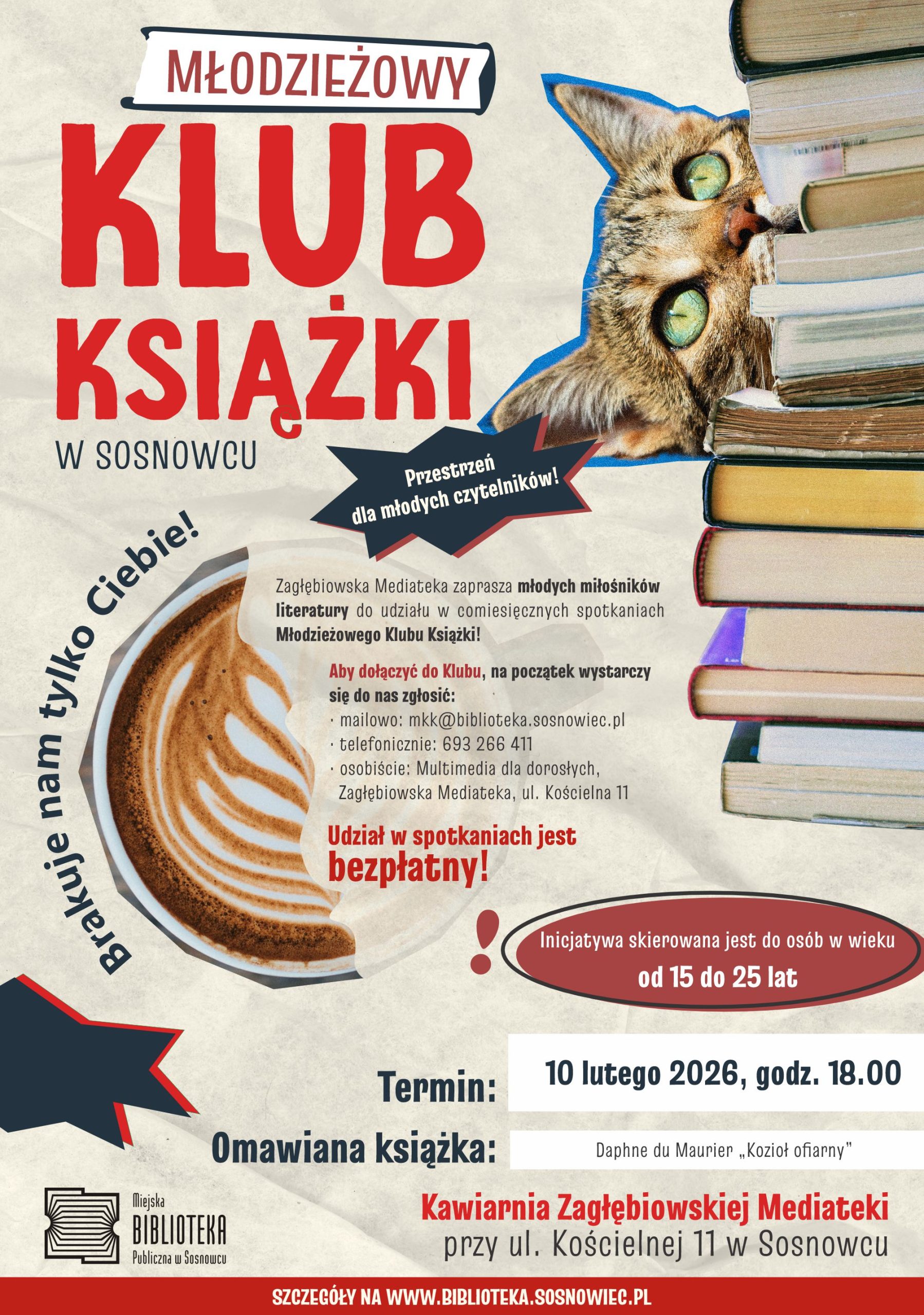 Zagłębiowska Mediateka zaprasza młodych miłośników literatury do udziału w comiesięcznych spotkaniach Młodzieżowego Klubu Książki, w Kawiarni Zagłębiowskiej Mediateki przy ul. Kościelnej 11 w Sosnowcu.