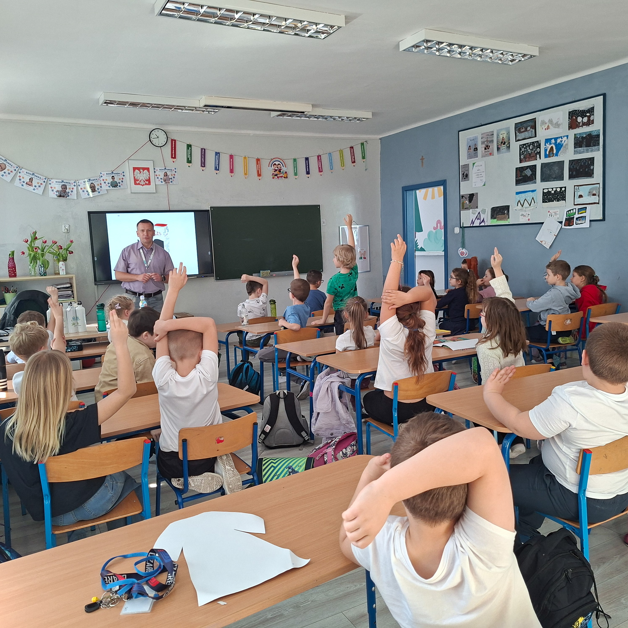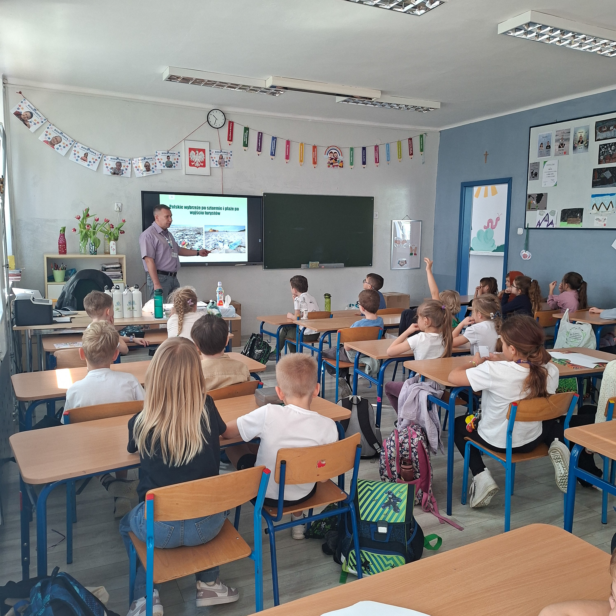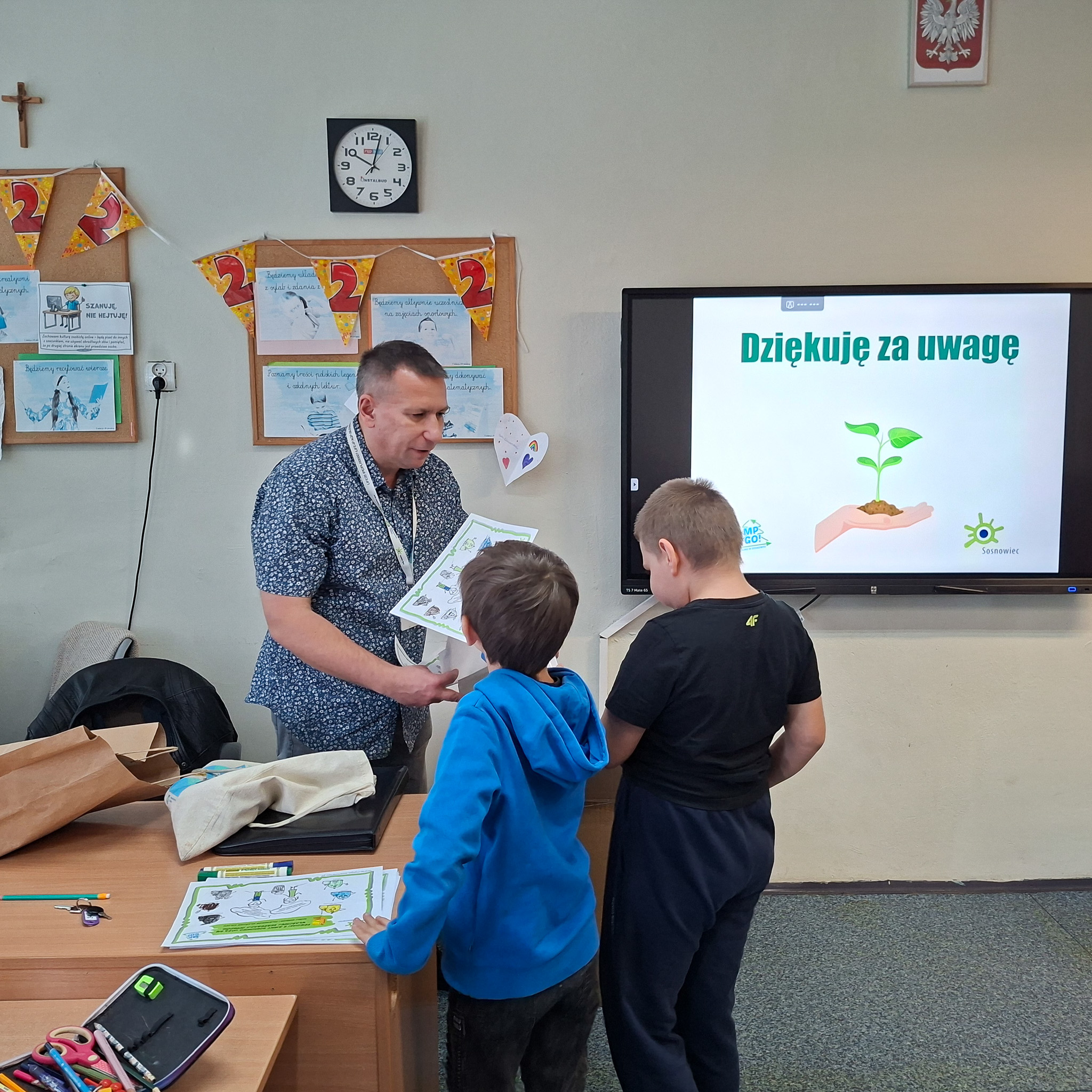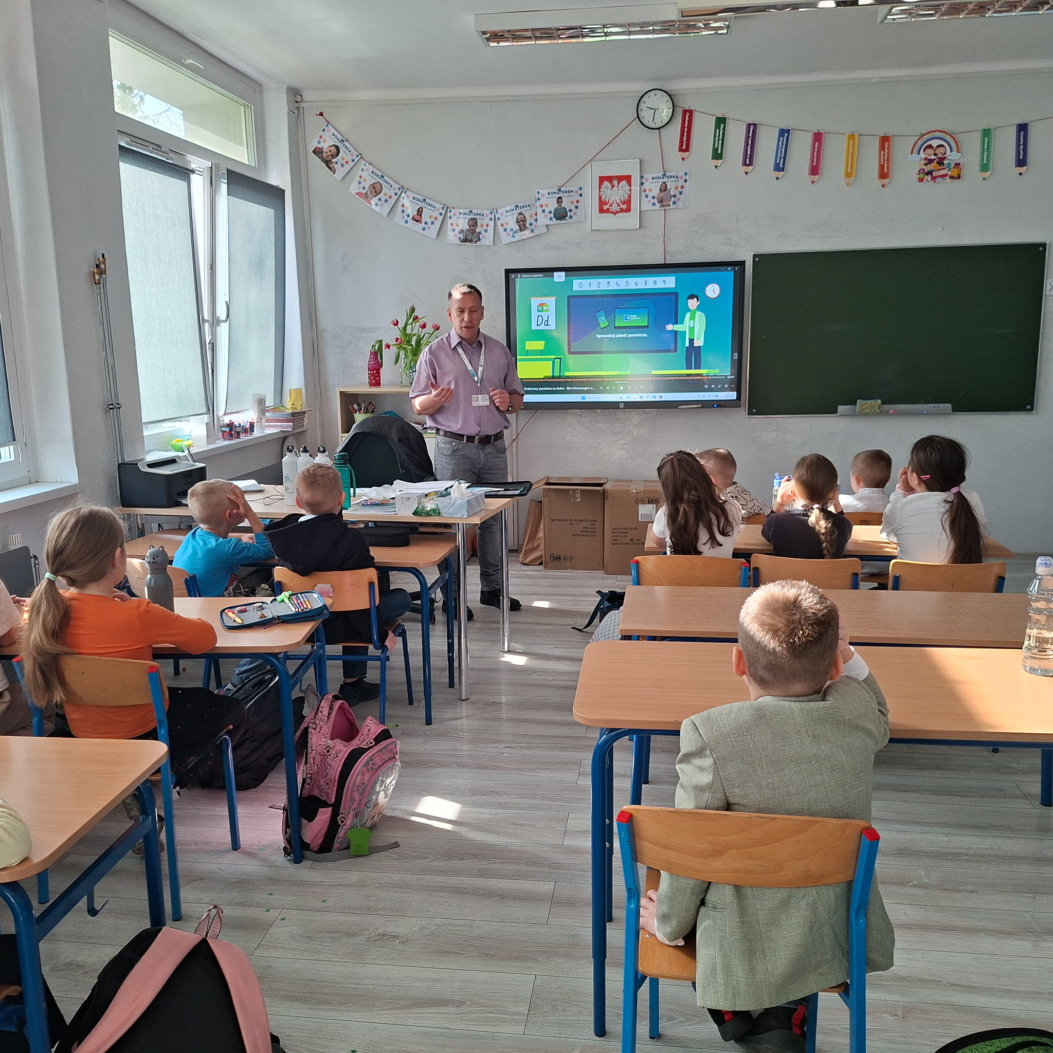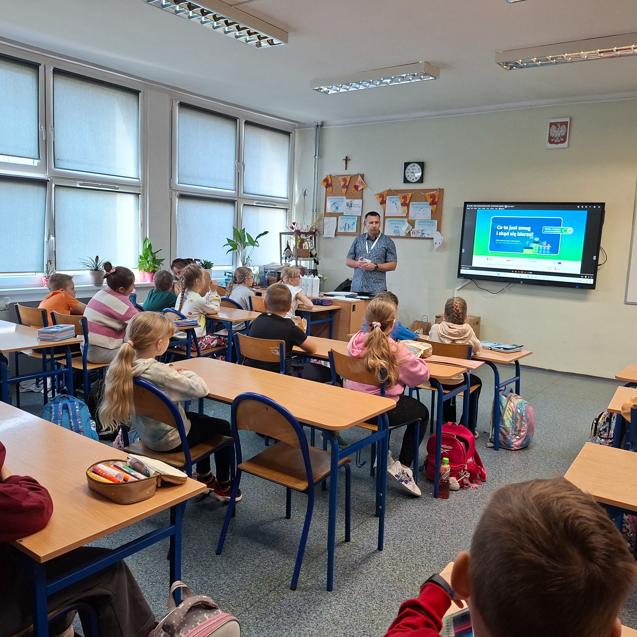 Mrozy już za nami, a na zewnątrz coraz cieplej. Nie oznacza to, że możemy już zapominać o niskich temperaturach, ponieważ wciąż mamy kalendarzową zimę, a co za tym idzie, w dalszym ciągu istnieje ryzyko wystąpienia SMOGU zwłaszcza kiedy osoby, które posiadają tak zwane kopciuchy dogrzewają się używając do tego węgla gorszej jakości lub co gorsza odpadów. Stąd w dniach od 09 do 12 marca 2026 r, Ekodoradca odwiedził Szkołę Podstawową nr 23 przy ul. Władysława Jagiełły 3, w rejonie której w ostatnim czasie było kilka zgłoszonych interwencji dotyczących zanieczyszczeń powietrza. Ekodoradca przeprowadził prelekcje dla uczniów tamtejszej szkoły w ramach projektu unijnego LIFE „Śląskie. Przywracamy błękit”. Łącznie w tych zajęciach, w klasach od I do VIII, wzięło udział 316 uczniów. W trakcie prelekcji uczniowie zostali zapoznani z problematyką zjawiska SMOGU. Omówiono przyczyny powstawania zanieczyszczeń powietrza, jaki skutek te zanieczyszczenia mają na nasze życie i zdrowie oraz jak można przeciwdziałać temu zjawisku. Młodzież szkolną poinformowano również o możliwościach ubiegania się o dotację na wymianę starego pieca lub kotła, które to urządzenia grzewcze są głównymi źródłami SMOGU jako emitory zanieczyszczeń, w ramach tak zwanej niskiej emisji. Dodatkowo omówiono na podstawie prezentacji z MPGO Sosnowiec, jak powstają odpady, czym jest mikroplastik oraz jak prawidłowo segregować odpady, którym należy nadawać tak zwane „drugie życie”. We wszystkich klasach zajęcia cieszyły się sporym zainteresowaniem, a młodzież szkolna chętnie włączała się do dyskusji. Podziękowania należą się również gronu pedagogicznemu, dzięki któremu zajęcia przebiegały sprawnie i w miłej atmosferze. Na koniec każdy uczeń otrzymał drobny upominek w postaci aluminiowego bidonu z logo Sosnowca i MPGO Sosnowiec.