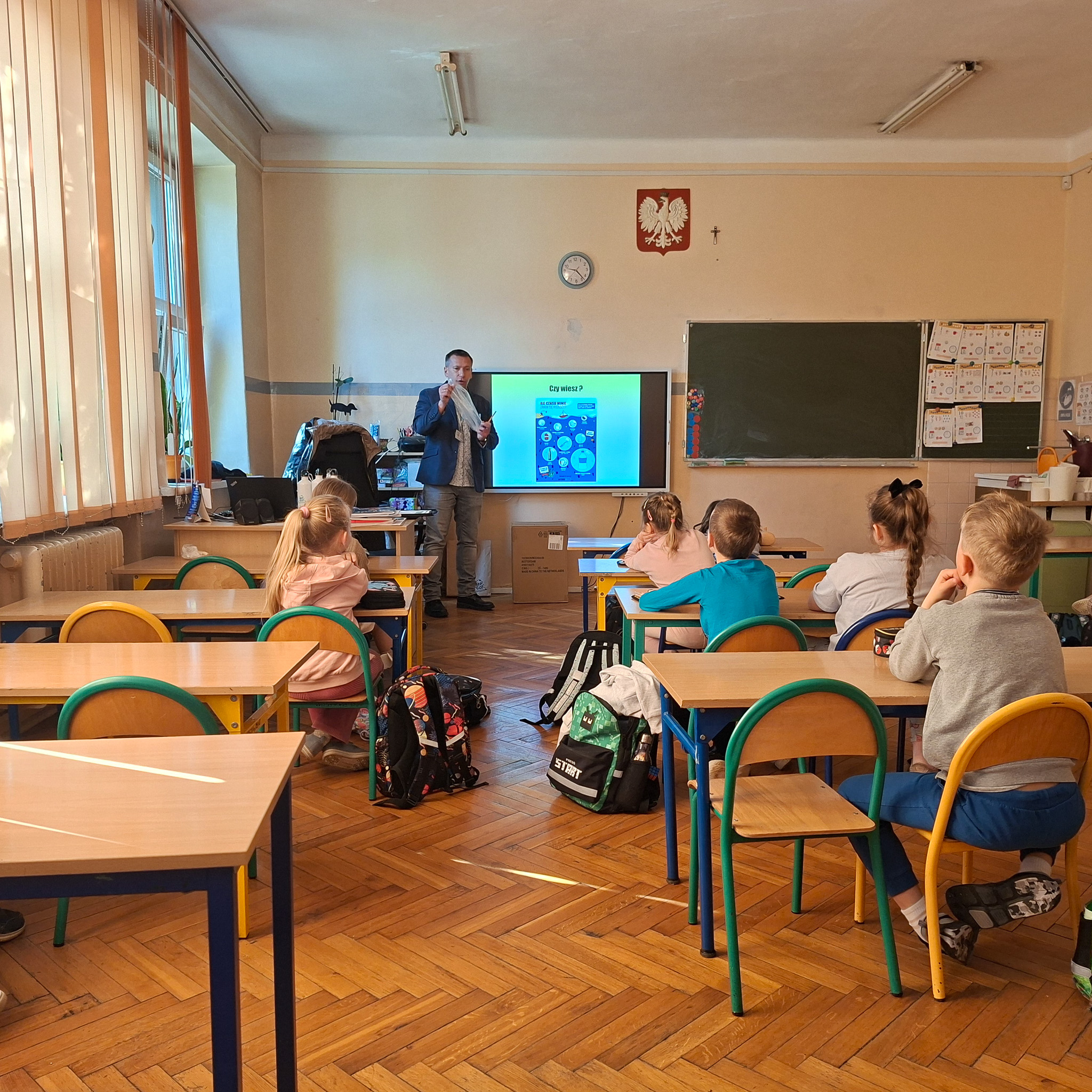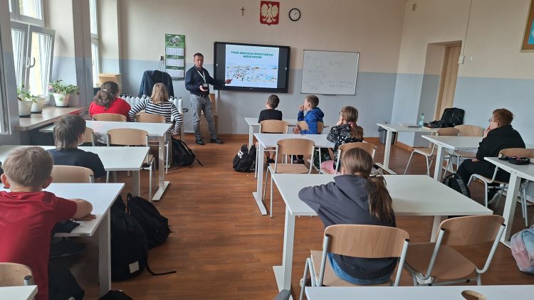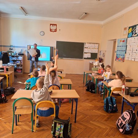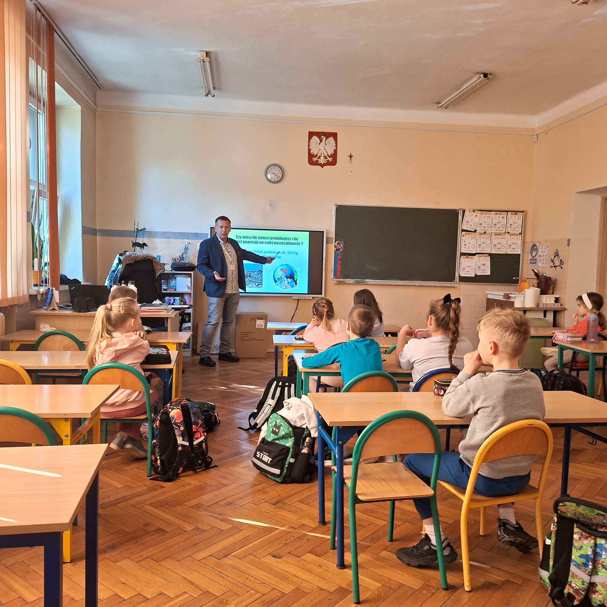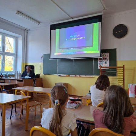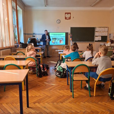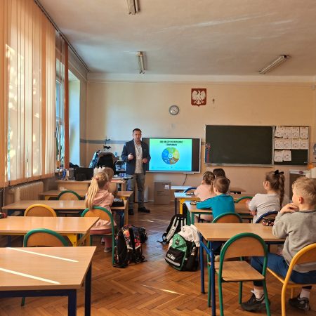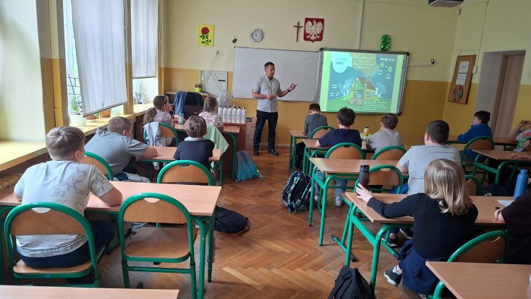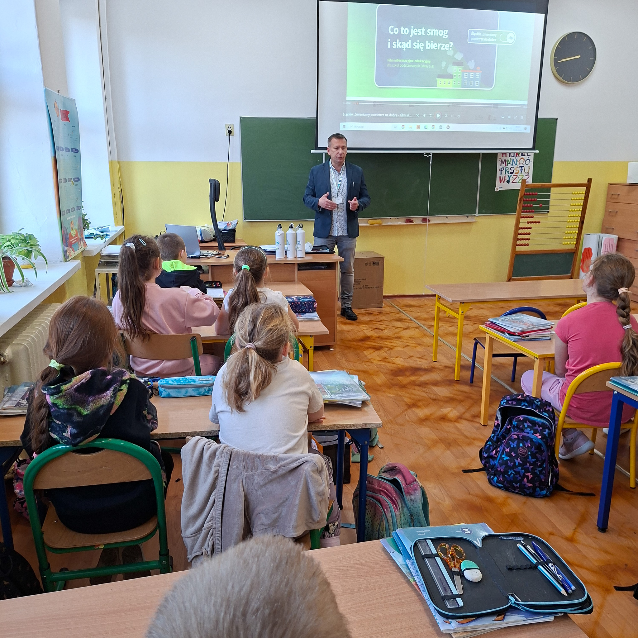 W dniach 23, 25 i 26 marca 2026r, w Szkole Podstawowej nr 25 w Sosnowcu przy ul. Ignacego Krasickiego 1, Ekodoradca przeprowadził eko – prelekcje w klasach I – VII, w których łączna frekwencja wyniosła 211 uczniów. W trakcie zajęć słuchacze zostali zapoznani w projektem: LIFE „Śląskie. Przywracamy błękit”. W szczególności omówiono dlaczego tak ważnym jest aby dbać o czyste powietrze i jakie negatywne skutki zdrowotne wywołuje zjawisko SMOG-u. Jak reagować i jak chronić się przed SMOG-iem. Podczas zajęć oprócz stosownej prezentacji wykorzystano też filmy edukacyjne ze strony Samorządu Województwa Śląskiego – „Śląskie pełne czystej energii” – „Mogę zatrzymać SMOG”, dla poszczególnych grup wiekowych. W drugiej części zajęć na podstawie prezentacji z MPGO w Sosnowcu przypomniano o prawidłowej segregacji odpadów jak i o podstawach ekologii. Każdy z uczniów na koniec lekcji otrzymał bidony aluminiowe. Zajęcia wzbudziły ogólną ciekawość ze strony młodzieży szkolnej, z których część aktywnie brała udział w zajęciach dopytując się o różne tematy. Dodatkowo poinformowano o możliwościach uzyskania wsparcia finansowego przez rodziny uczniów, które do ogrzewania wciąż używają nieefektywnych źródeł ciepła, tak zwanych „kopciuchów”, z uwagi na fakt, że szkoła jest usytuowana w rejonie, gdzie są jeszcze urządzenia grzewcze na węgiel, naruszające przepisy tak „Śląskiej uchwały antysmogowej”. Na terenie szkoły pozostawiono plakaty z danymi kontaktowymi do Ekodoradcy.