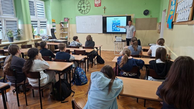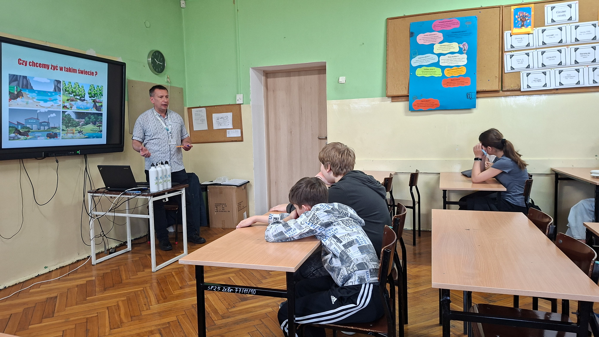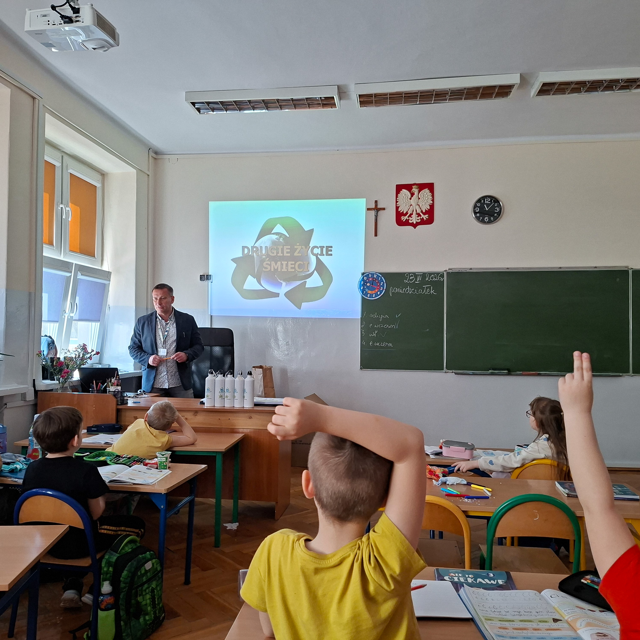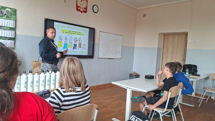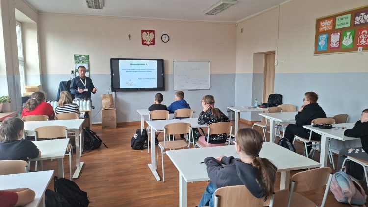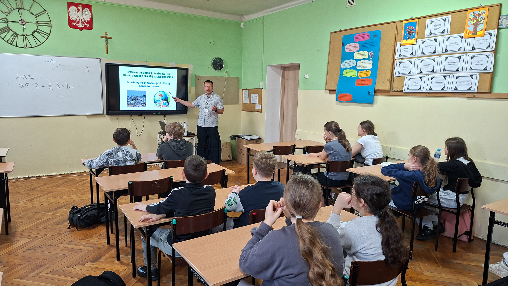 W dniach 23, 25 i 26 marca 2026r, w Szkole Podstawowej nr 25 w Sosnowcu przy ul. Ignacego Krasickiego 1, Ekodoradca przeprowadził eko – prelekcje w klasach I – VII, w których łączna frekwencja wyniosła 211 uczniów. W trakcie zajęć słuchacze zostali zapoznani w projektem: LIFE „Śląskie. Przywracamy błękit”. W szczególności omówiono dlaczego tak ważnym jest aby dbać o czyste powietrze i jakie negatywne skutki zdrowotne wywołuje zjawisko SMOG-u. Jak reagować i jak chronić się przed SMOG-iem. Podczas zajęć oprócz stosownej prezentacji wykorzystano też filmy edukacyjne ze strony Samorządu Województwa Śląskiego – „Śląskie pełne czystej energii” – „Mogę zatrzymać SMOG”, dla poszczególnych grup wiekowych. W drugiej części zajęć na podstawie prezentacji z MPGO w Sosnowcu przypomniano o prawidłowej segregacji odpadów jak i o podstawach ekologii. Każdy z uczniów na koniec lekcji otrzymał bidony aluminiowe. Zajęcia wzbudziły ogólną ciekawość ze strony młodzieży szkolnej, z których część aktywnie brała udział w zajęciach dopytując się o różne tematy. Dodatkowo poinformowano o możliwościach uzyskania wsparcia finansowego przez rodziny uczniów, które do ogrzewania wciąż używają nieefektywnych źródeł ciepła, tak zwanych „kopciuchów”, z uwagi na fakt, że szkoła jest usytuowana w rejonie, gdzie są jeszcze urządzenia grzewcze na węgiel, naruszające przepisy tak „Śląskiej uchwały antysmogowej”. Na terenie szkoły pozostawiono plakaty z danymi kontaktowymi do Ekodoradcy.