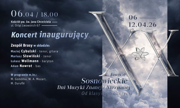 6 kwietnia 2026 o godz. 18.00 w Kościele pw. św. Jana Chrzciciela przy ul. Orląt Lwowskich 67 odbędzie się Koncert inaugurujący XXV Festiwal Sosnowieckie Dni Muzyki Znanej i Nieznanej – Od klasyki po odkrycia.Wstęp wolny.