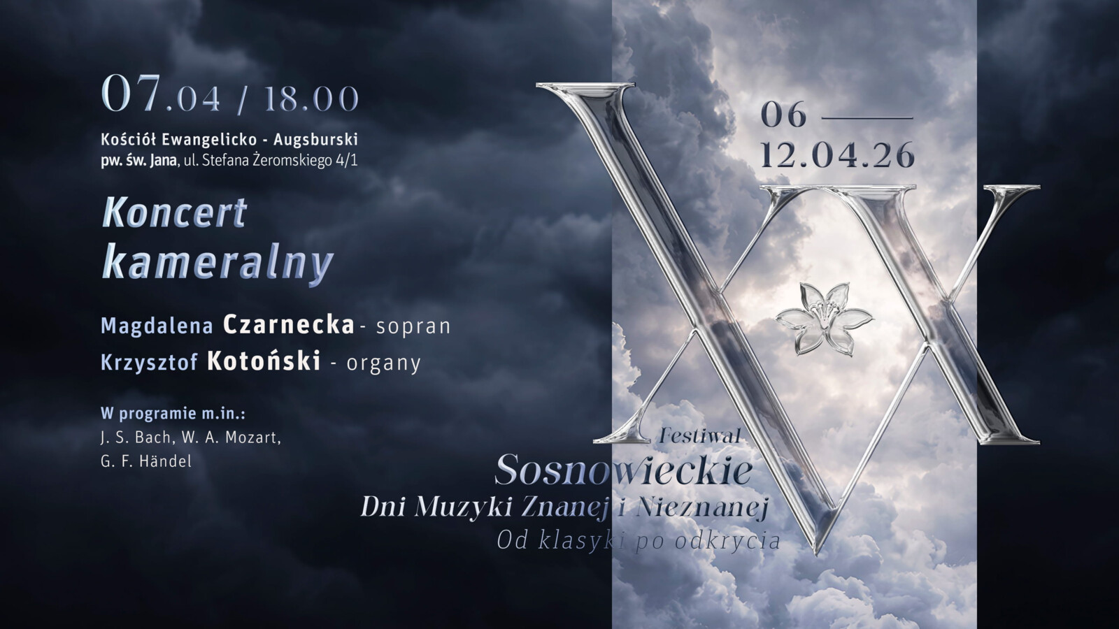 7 kwietnia 2026 o godz. 18.00 Kościół Ewangelicko-Augsburski pw. św. Jana przy ul.Żeromskiego zaprasza na Koncert kameralny w ramach XXV Festiwalu SDMZiN.