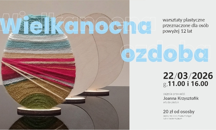 Muzeum zaprasza wszystkich miłośników rzemiosła od 12. roku życia. Tym razem wykonamy wyjątkowe, „malowane” włóczką pisanki (na drewnianym formie), które mogą posłużyć jako urocza ozdoba wielkanocnego stołu lub wiosenny upominek. Koszt warsztatów to 20 zł od uczestnika. Muzeum zapewnia wszystkie potrzebne materiały.