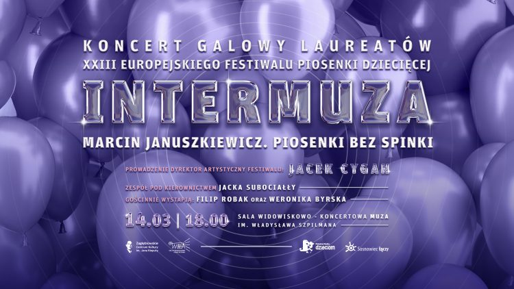 Już 14 marca 2026 o godz.18.00 zapraszamy do Sali Widowiskowo-Koncertowej MUZA w Sosnowcu na Koncert Galowy Laureatów XXIII Europejskiego Festiwalu Piosenki Dziecięcej INTERMUZA .