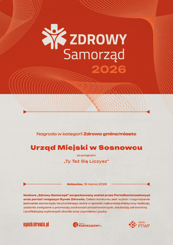 Po raz dziewiąty redakcje Portalu Samorządowego oraz Rynku Zdrowia zorganizowały konkurs Zdrowy Samorząd – inicjatywę promującą najlepsze praktyki jednostek samorządu terytorialnego w zakresie promocji zdrowia, edukacji zdrowotnej i profilaktyki chorób.W gronie laureatów w kategorii Zdrowa Gmina/Miasto znalazł się Sosnowiec za kampanię profilaktyczną „Ty też się liczysz”.