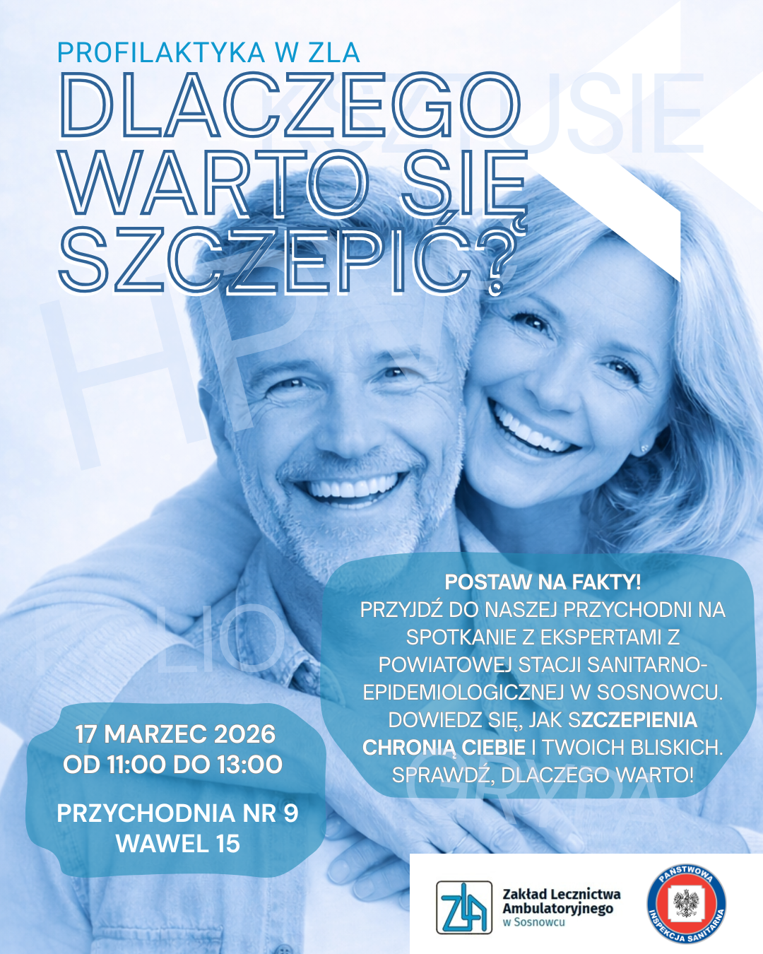 Już 17 marca 2026 r. w godzinach od 11:00 do 13:00 w holu Zakładu Lecznictwa Ambulatoryjnego w Sosnowcu przy ul. Wawel 15 odbędzie się kolejna akcja profilaktyczna. Tym razem pracownicy ZLA zachęcać będą do szczepień ochronnych.