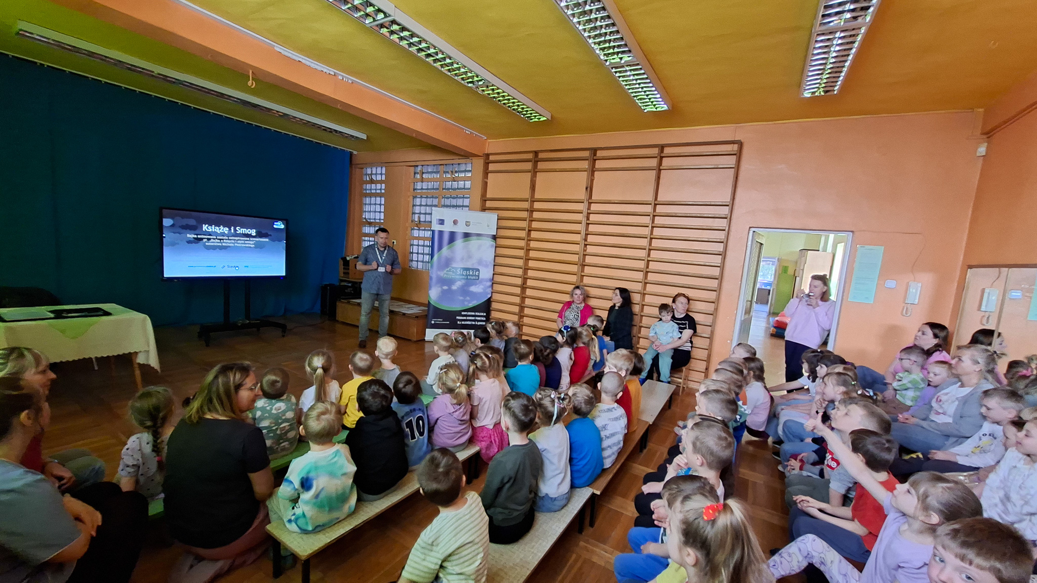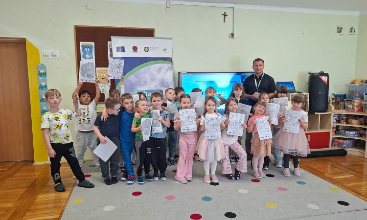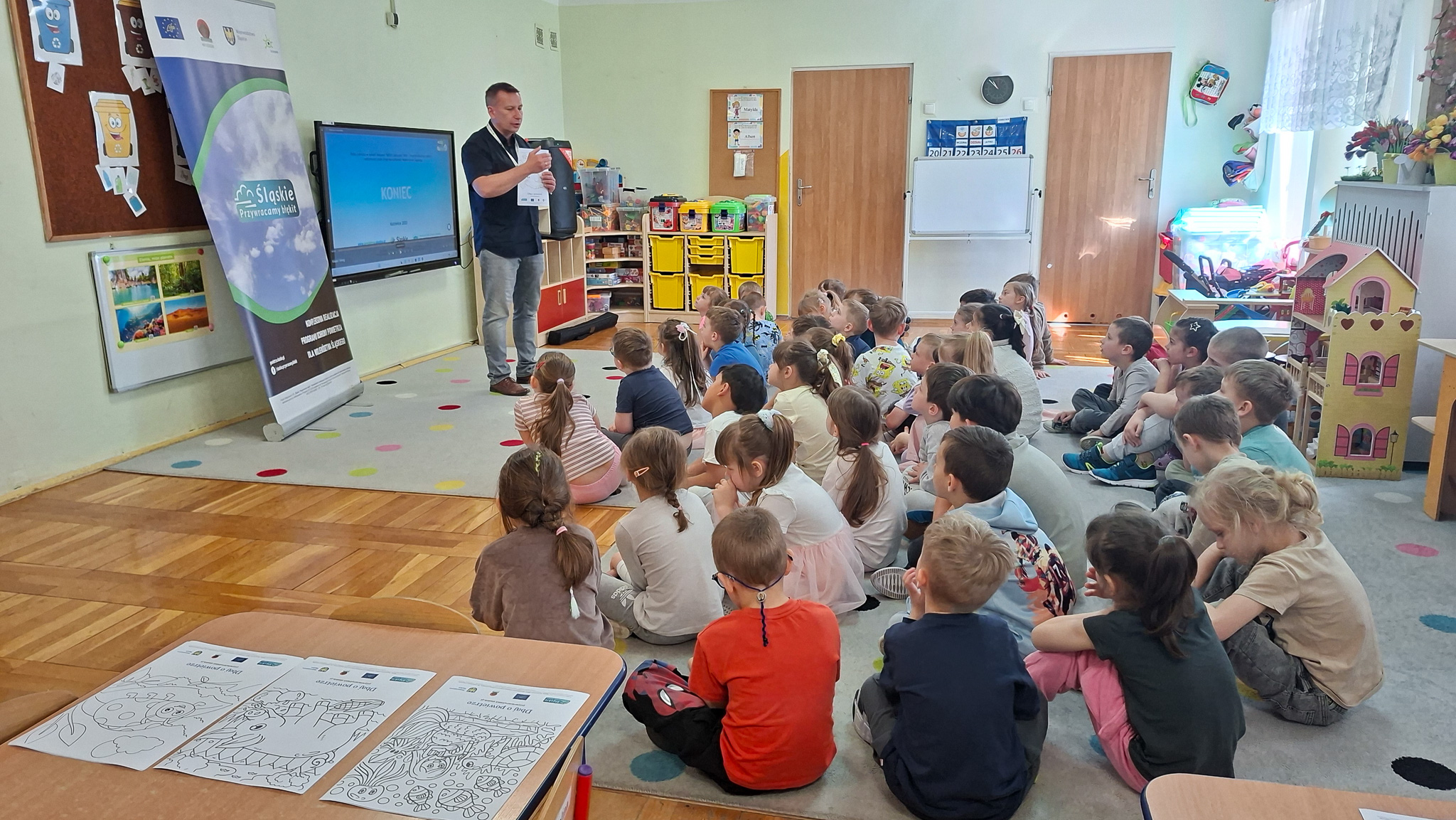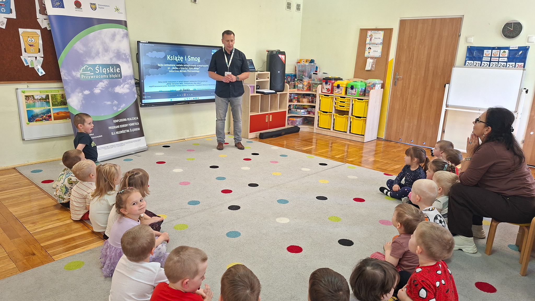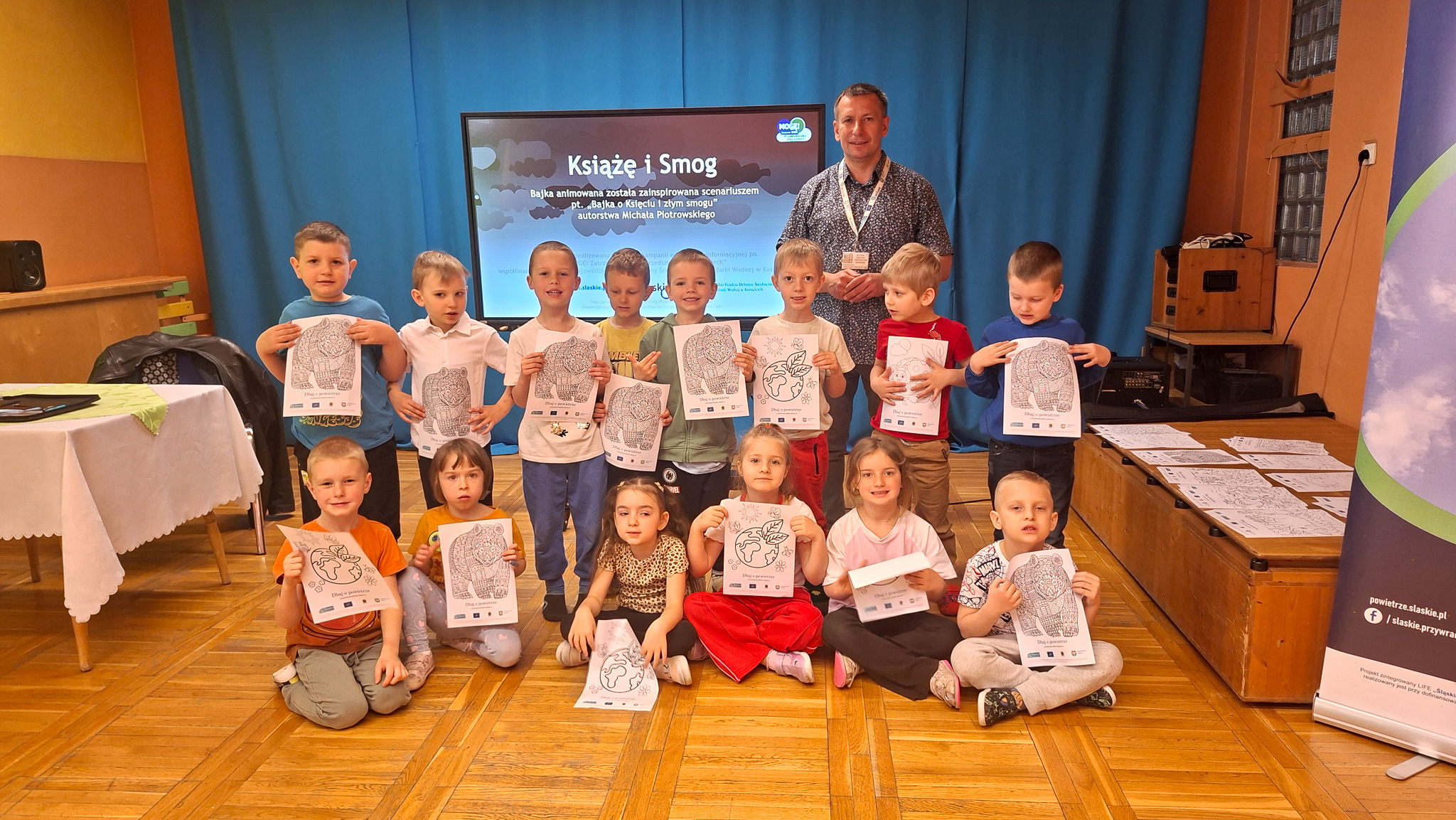 W dniach 23 i 24 kwietnia 2026 r., Ekodoradca odpowiadając na zaproszenia Dyrekcji Przedszkoli Miejskich nr 22 przy ul. Hutniczej 3 i 56 przy ul. Jagiellońskiej 13e w Sosnowcu, kolejno odwiedził te placówki, gdzie przeprowadził Eko prelekcje. Łącznie w obu placówkach w zajęciach brało udział 152 przedszkolaków. Dzieci z poszczególnych grup z ciekawością uczestniczyli w zajęciach realizowanych w ramach projektu: LIFE „Śląskie. Przywracamy błękit”. Wykorzystując między innymi film edukacyjny pod tytułem: „Książę i Smog”, zapoznano przedszkolaków z problematyką zanieczyszczeń powietrza oraz jakie są negatywne skutki SMOG-u dla naszego życia i zdrowia. Wspomniano też co robić i jak reagować kiedy widzimy kogoś kto nieodpowiedzialnie spala odpady. W dalszej kolejności omówiono jak otaczająca nas przyroda wspomaga jakość powietrza i dlaczego warto dbać o otaczającą nasz przyrodę. Przypomniano dlaczego nie wolno wypalać traw, gdzie pożar może w sposób niekontrolowany rozprzestrzenić się na drzewa, które są nam niezbędne do produkcji tlenu. Na koniec zajęć, dzieci potrafiły odpowiedzieć dlaczego tak ważną kwestią jest aby dbać o czyste powietrze i otaczającą nas przyrodę, co tylko z optymizmem pozwala spojrzeć w przyszłość.