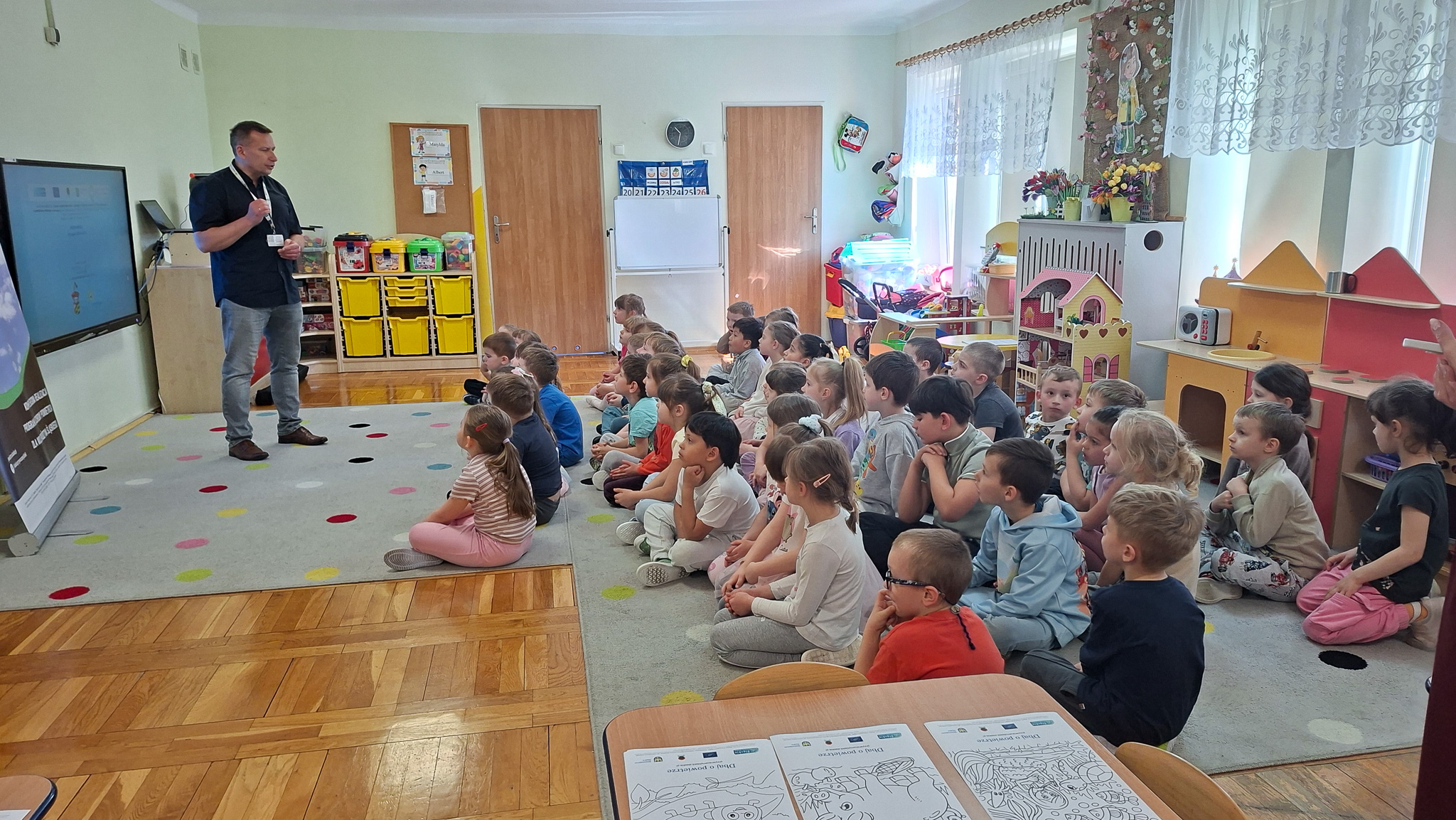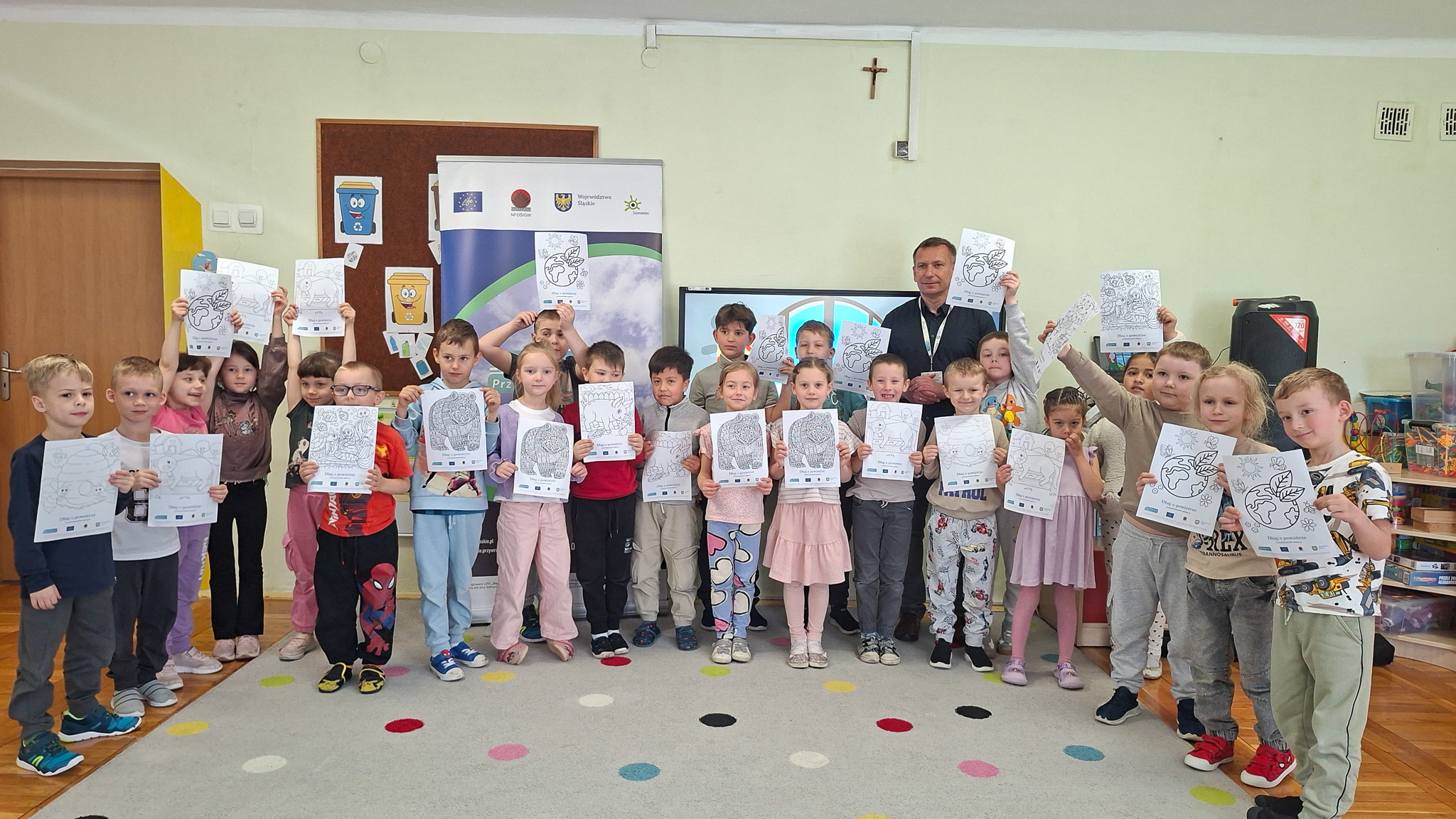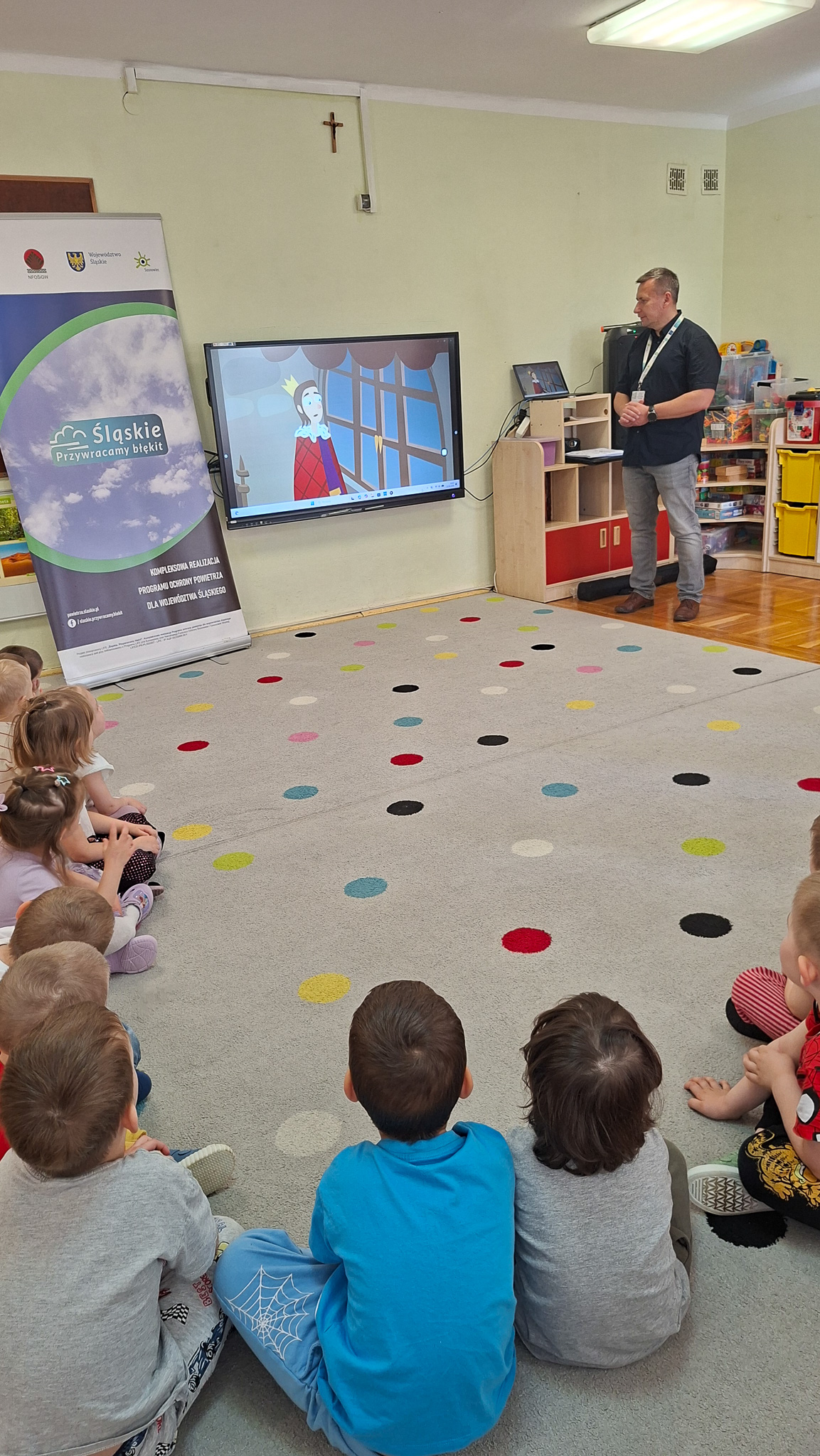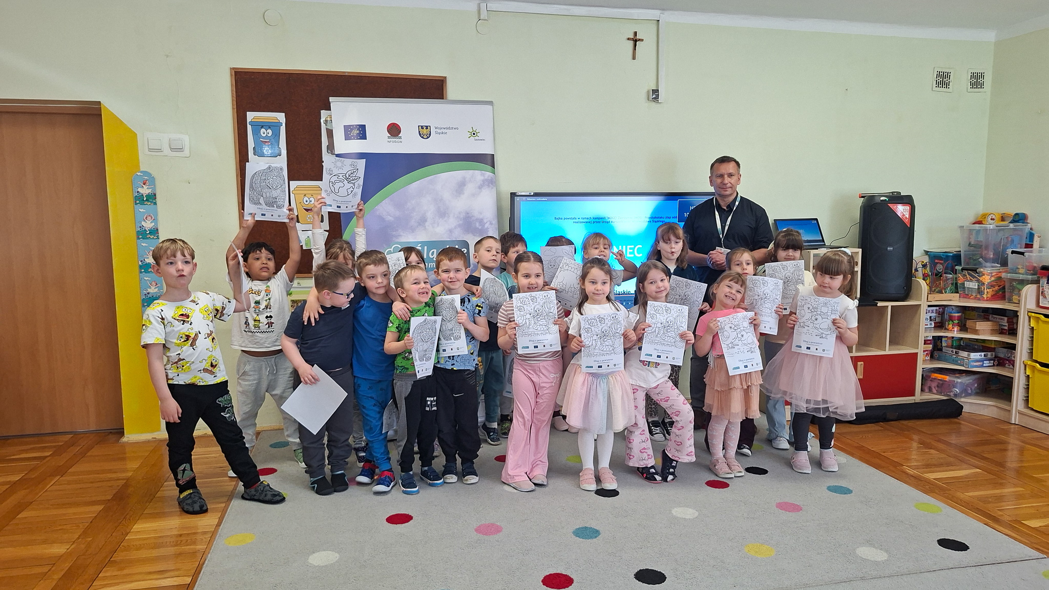 W dniach 23 i 24 kwietnia 2026 r., Ekodoradca odpowiadając na zaproszenia Dyrekcji Przedszkoli Miejskich nr 22 przy ul. Hutniczej 3 i 56 przy ul. Jagiellońskiej 13e w Sosnowcu, kolejno odwiedził te placówki, gdzie przeprowadził Eko prelekcje. Łącznie w obu placówkach w zajęciach brało udział 152 przedszkolaków. Dzieci z poszczególnych grup z ciekawością uczestniczyli w zajęciach realizowanych w ramach projektu: LIFE „Śląskie. Przywracamy błękit”. Wykorzystując między innymi film edukacyjny pod tytułem: „Książę i Smog”, zapoznano przedszkolaków z problematyką zanieczyszczeń powietrza oraz jakie są negatywne skutki SMOG-u dla naszego życia i zdrowia. Wspomniano też co robić i jak reagować kiedy widzimy kogoś kto nieodpowiedzialnie spala odpady. W dalszej kolejności omówiono jak otaczająca nas przyroda wspomaga jakość powietrza i dlaczego warto dbać o otaczającą nasz przyrodę. Przypomniano dlaczego nie wolno wypalać traw, gdzie pożar może w sposób niekontrolowany rozprzestrzenić się na drzewa, które są nam niezbędne do produkcji tlenu. Na koniec zajęć, dzieci potrafiły odpowiedzieć dlaczego tak ważną kwestią jest aby dbać o czyste powietrze i otaczającą nas przyrodę, co tylko z optymizmem pozwala spojrzeć w przyszłość.