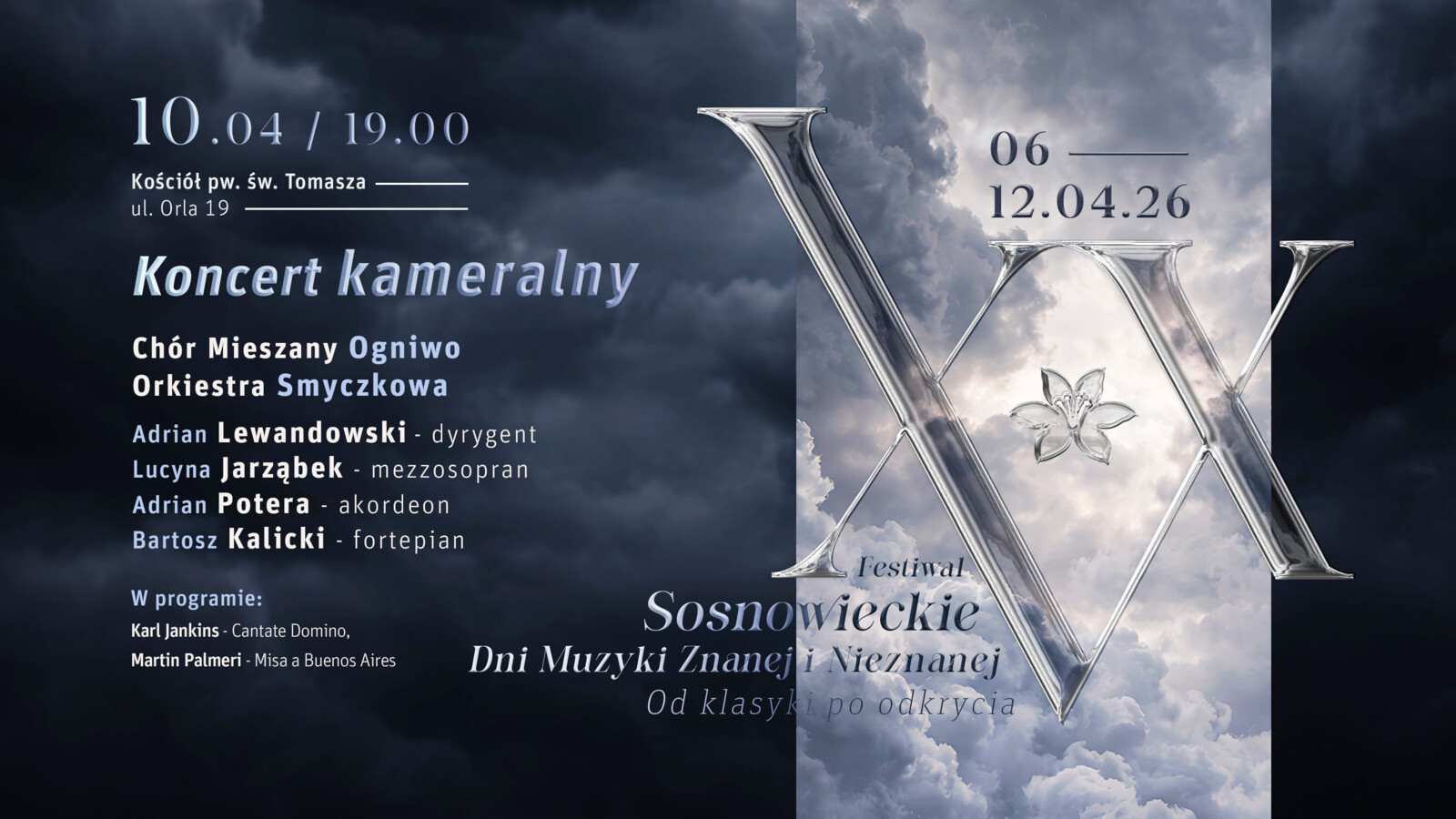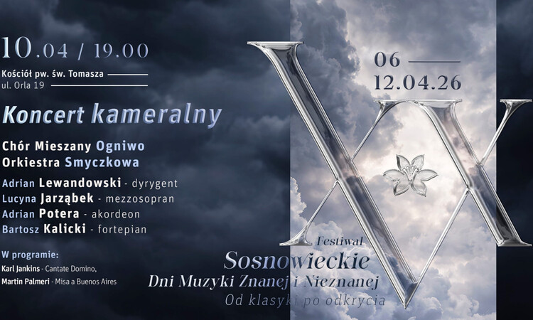 10.04.2026 r. o g. 19.00 w Kościele pw. św. Tomasza odbędzie koncert kameralny w ramach XXV Festiwalu Sosnowieckie Dni Muzyki Znanej i Nieznanej – Od klasyki po odkrycia.