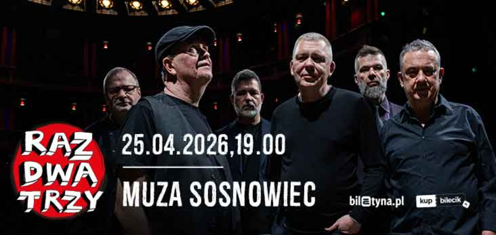 25 kwietnia w Sali Widowiskowo – Koncertowej Muza w Sosnowcu zagra zespół Raz, Dwa, Trzy – jeden z najbardziej rozpoznawalnych i cenionych zespołów na polskiej muzycznej. Koncert zorganizowano z okazji jubileuszu 35-lecia zespołu.
