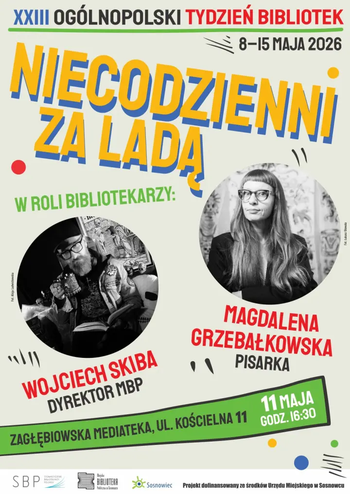 W ramach akcji, której dziennikarka i pisarka Magdalena Grzebałkowska, autorka bestsellerowych książek (m.in. „Dezorientacje. Biografia Marii Konopnickiej”, „Beksińscy. Portret podwójny”), wcieli się w rolę bibliotekarki i będzie pełnić godzinny dyżur w Wypożyczalni dla dorosłych Zagłębiowskiej Mediateki. Autorce towarzyszyć będzie Wojciech Skiba – Dyrektor MBP, który także podejmie bibliotekarskie wyzwanie.