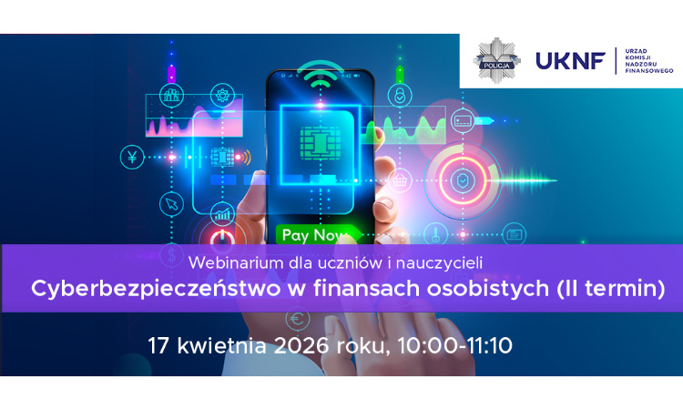 Urząd Komisji Nadzoru Finansowego zaprasza uczniów i nauczycieli na webinarium „Cyberbezpieczeństwo w finansach osobistych (II termin)” organizowane w ramach projektu Centrum Edukacji dla Uczestników Rynku – CEDUR, we współpracy z Komendą Główną Policji.